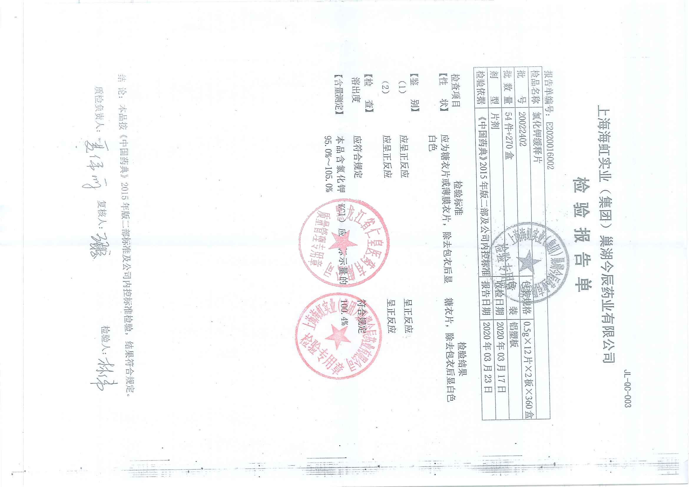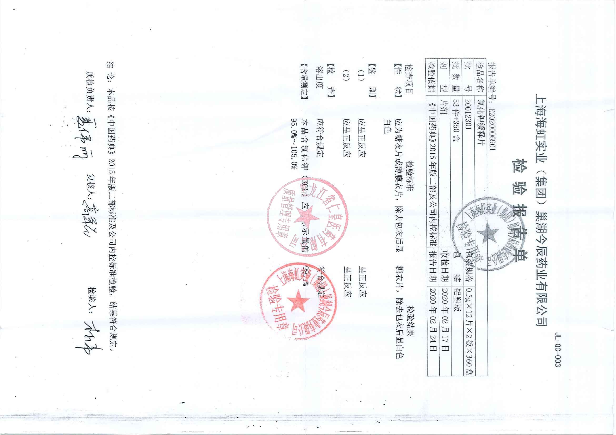 _氯化钾缓释片200