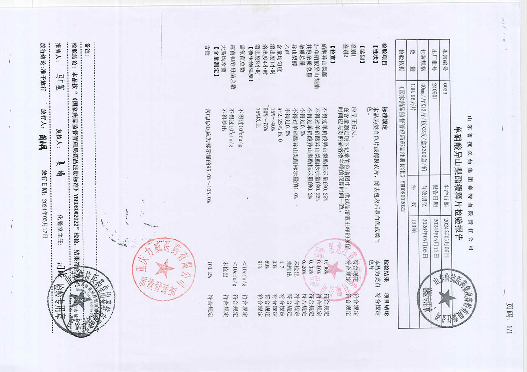 单硝酸异山梨酯缓释片