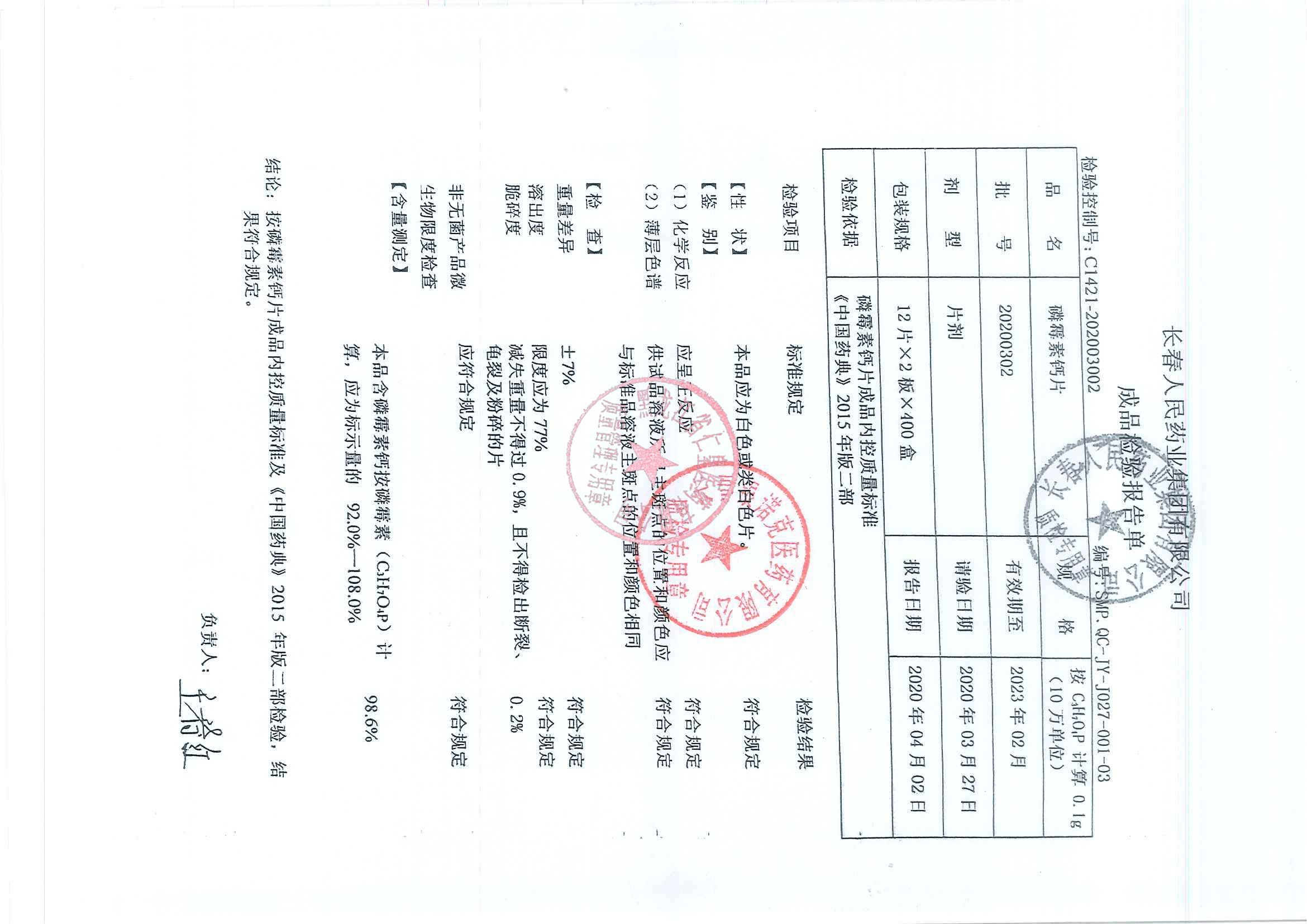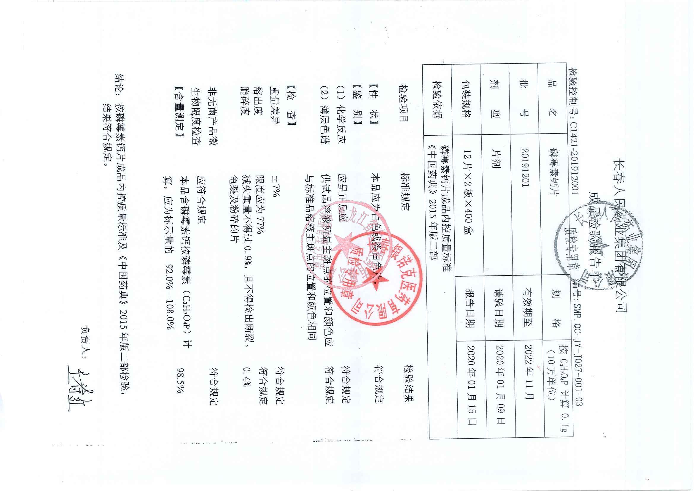 _磷霉素钙片2020