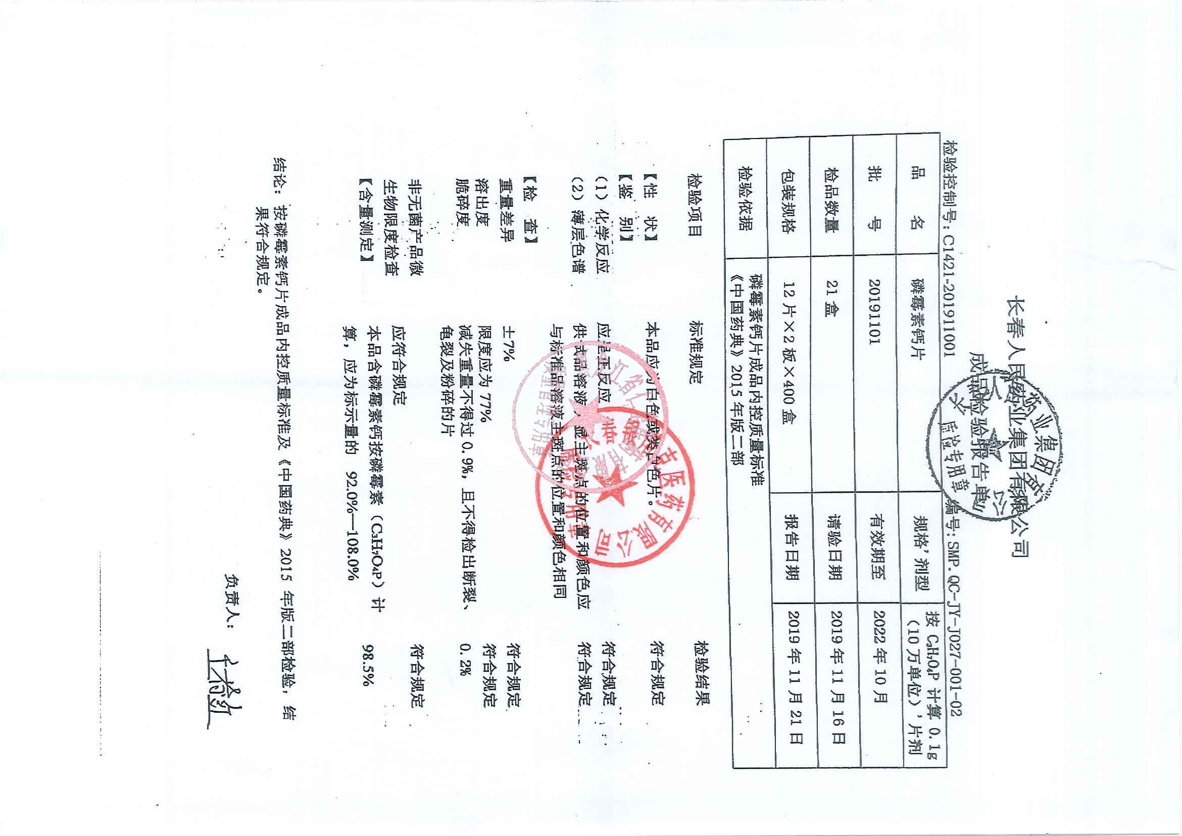 _磷霉素钙片2019