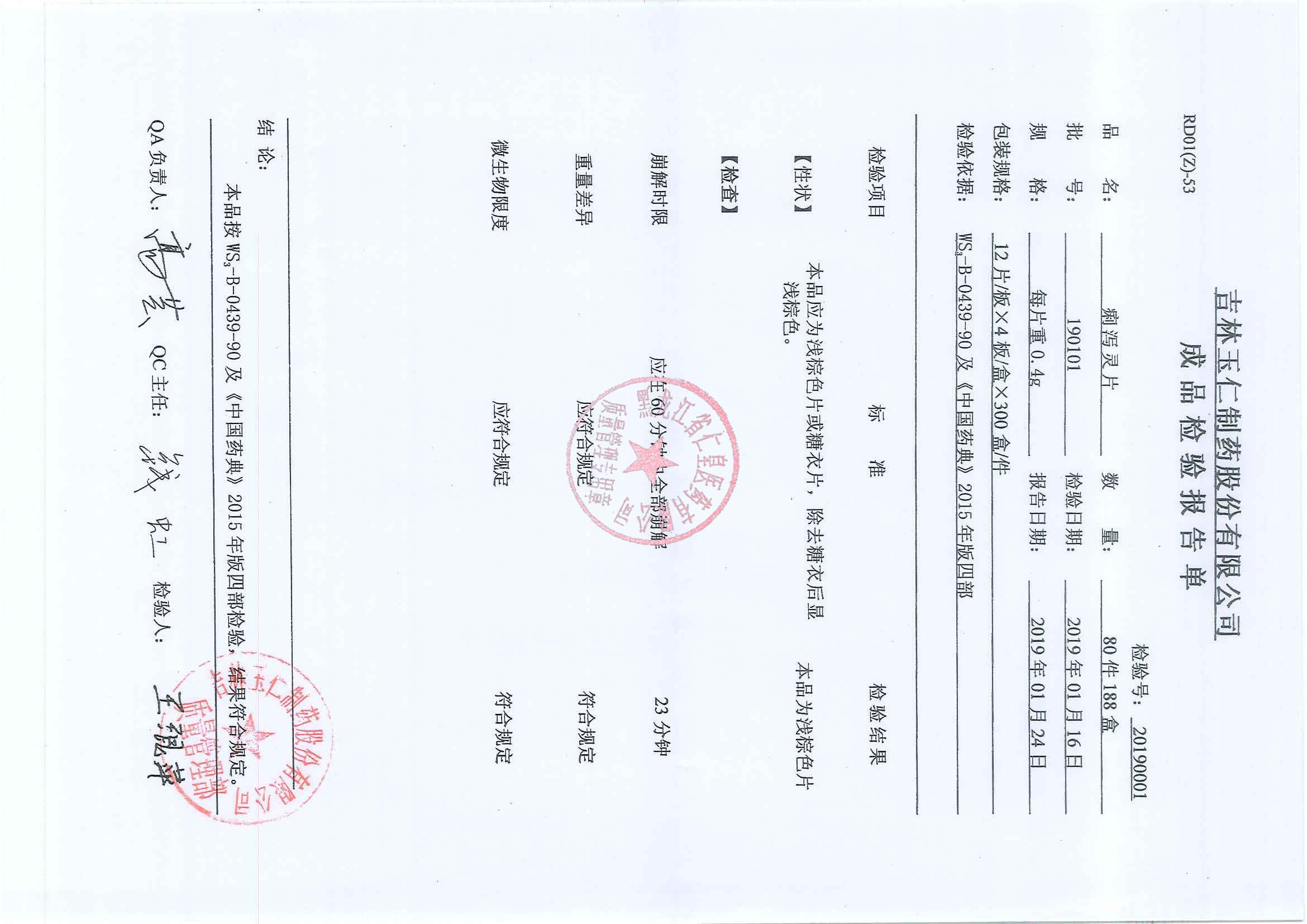 _痢泻灵片19010