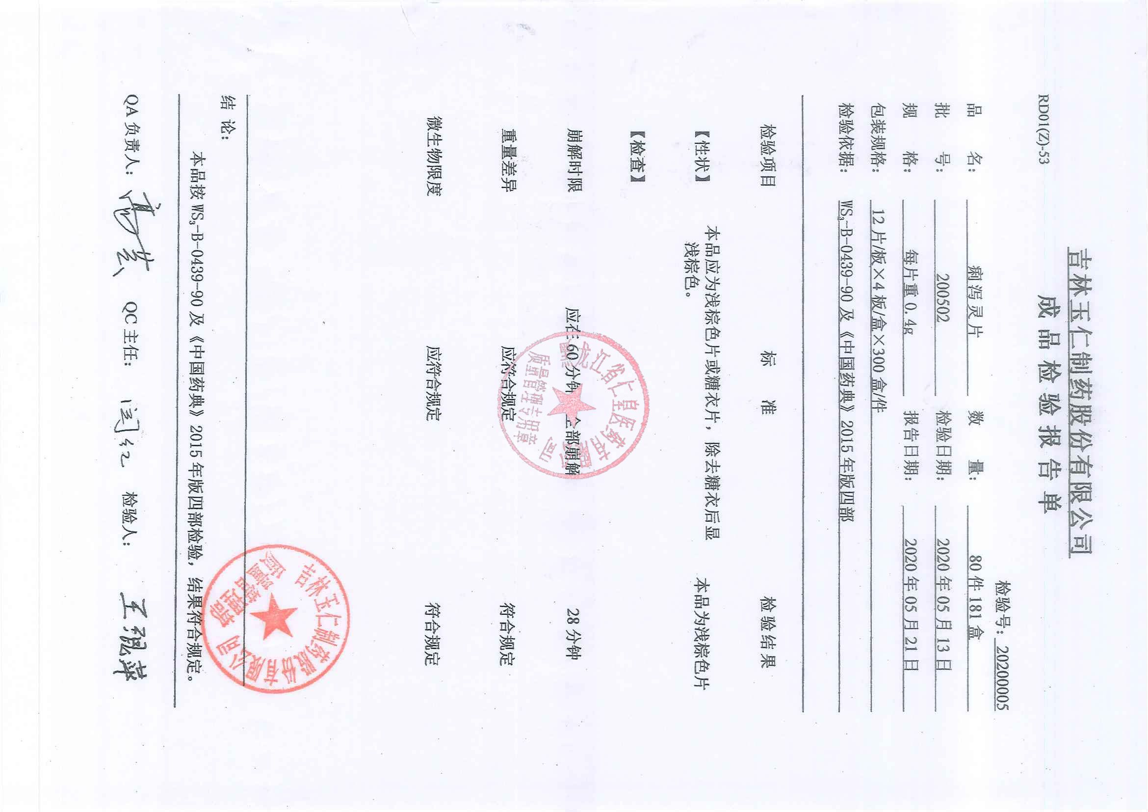 _痢泻灵片20050