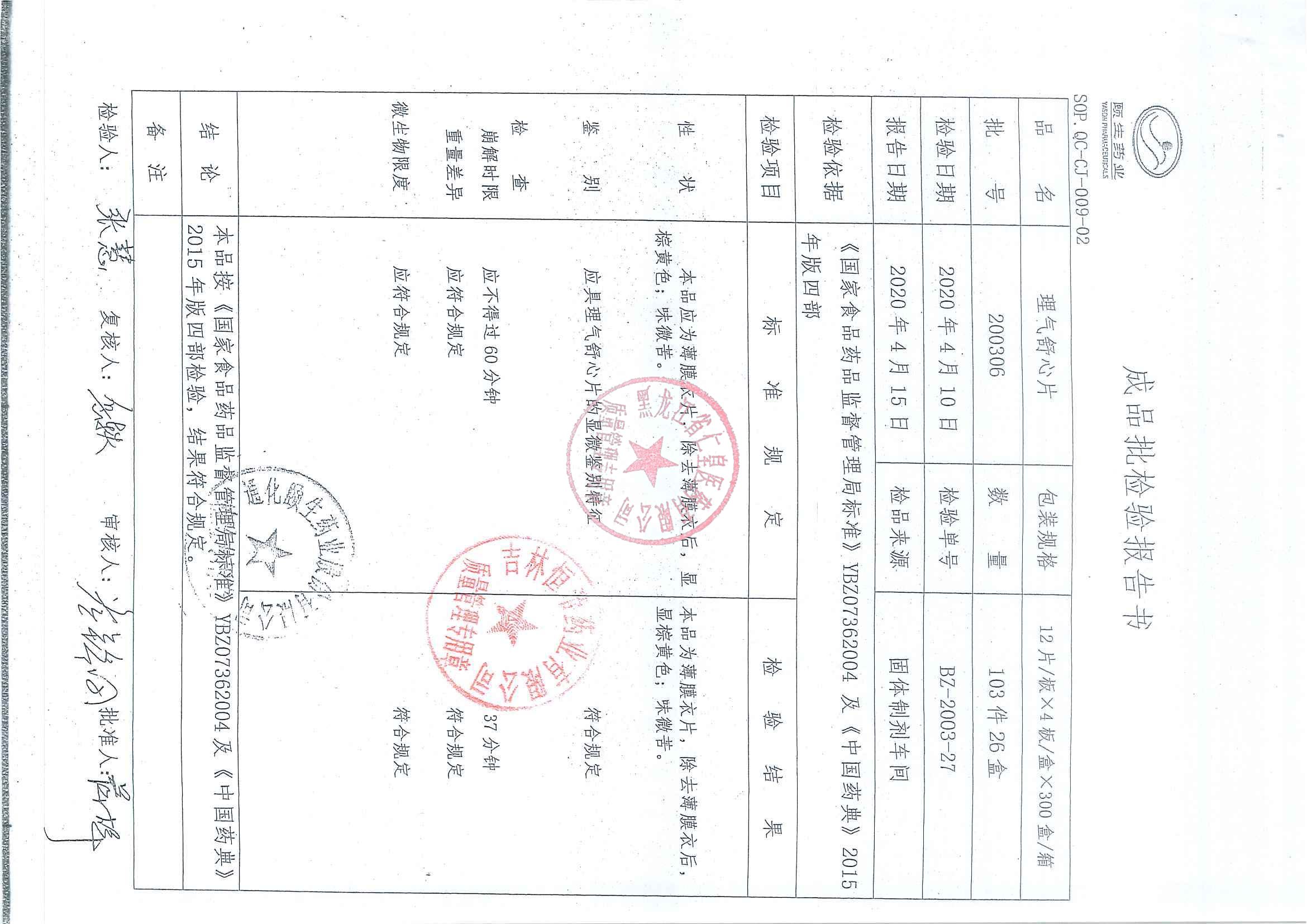 _理气舒心片2003