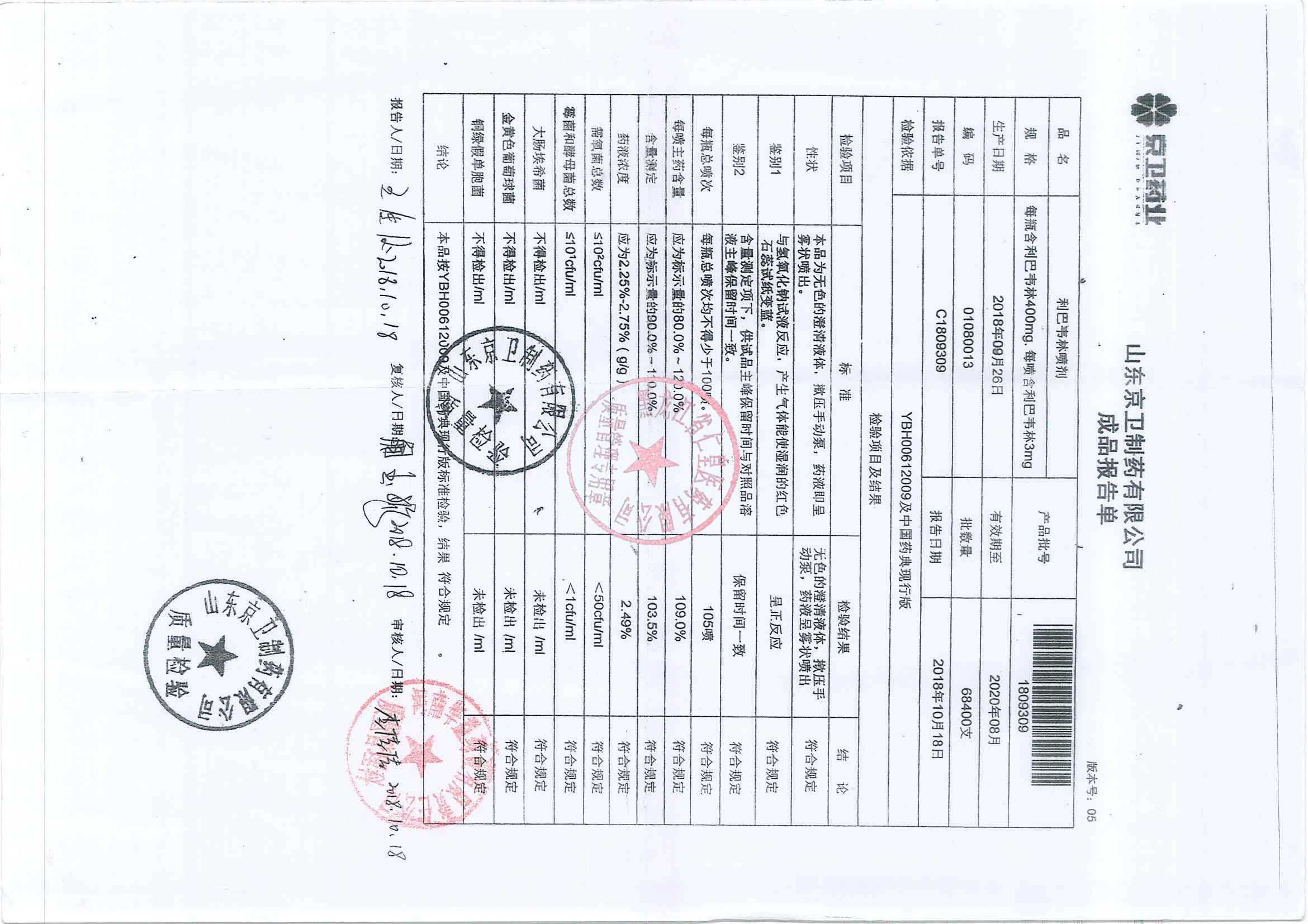 _利巴韦林喷剂180
