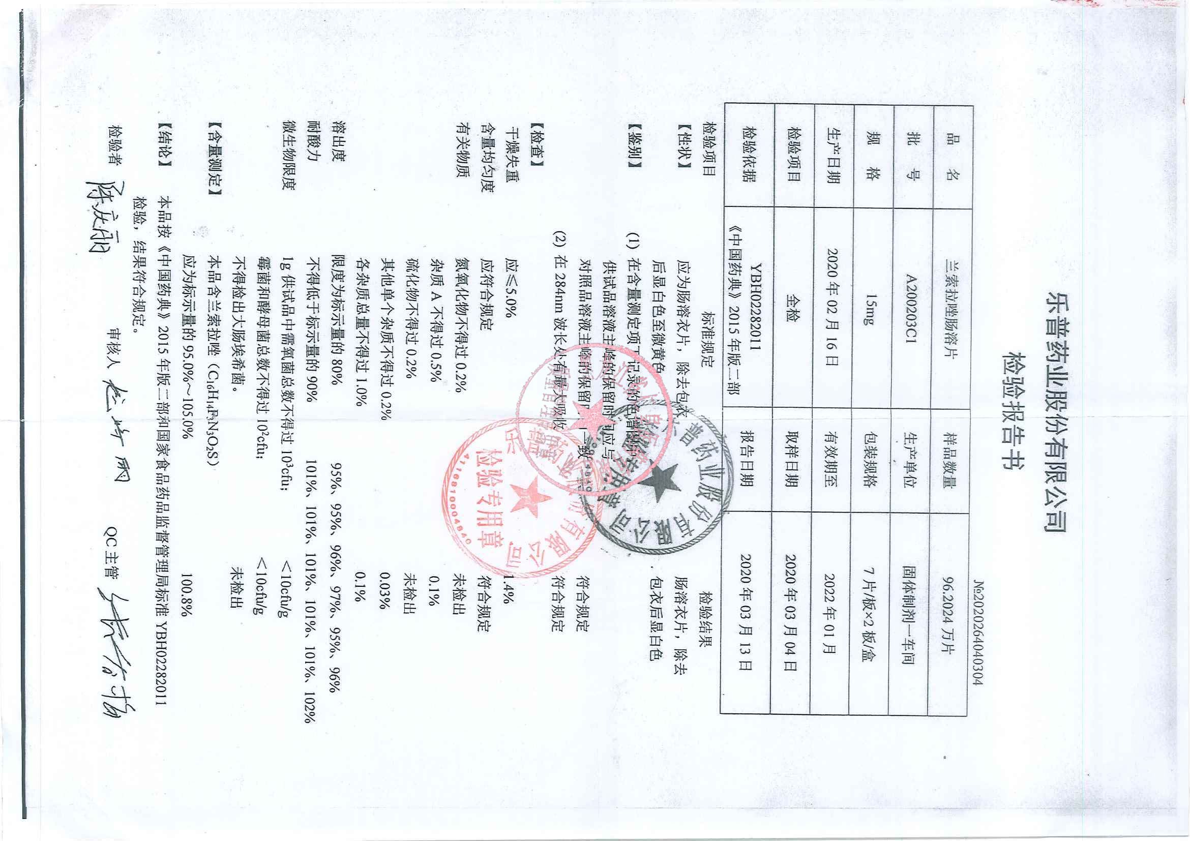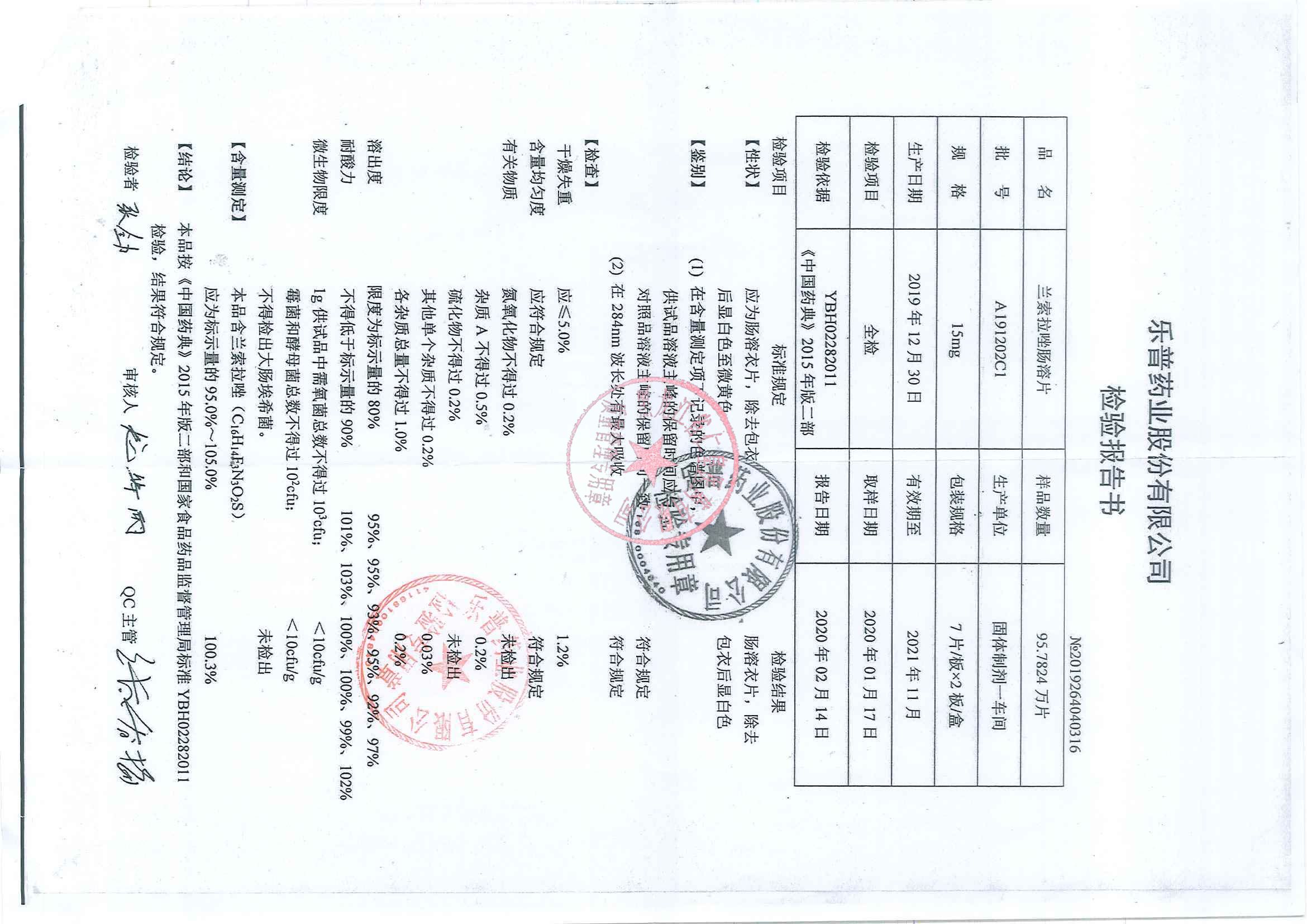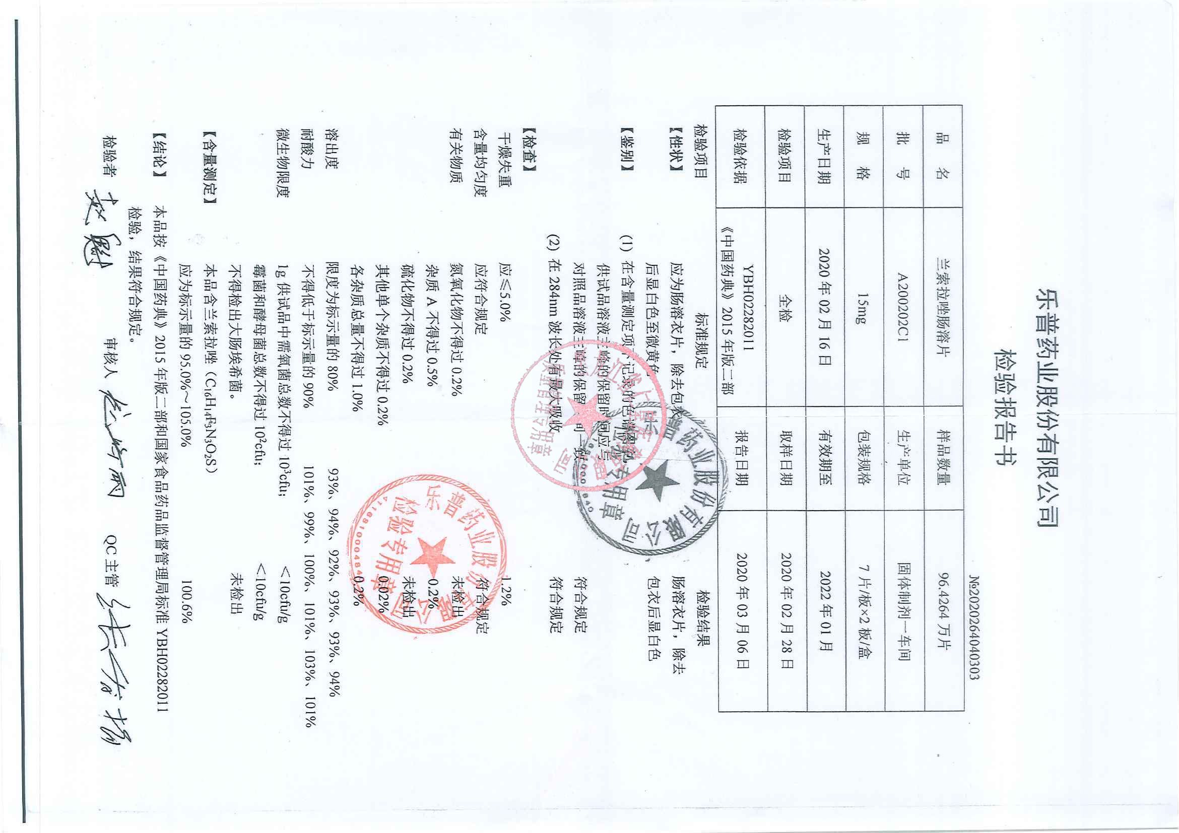 _兰索拉唑肠溶片A1