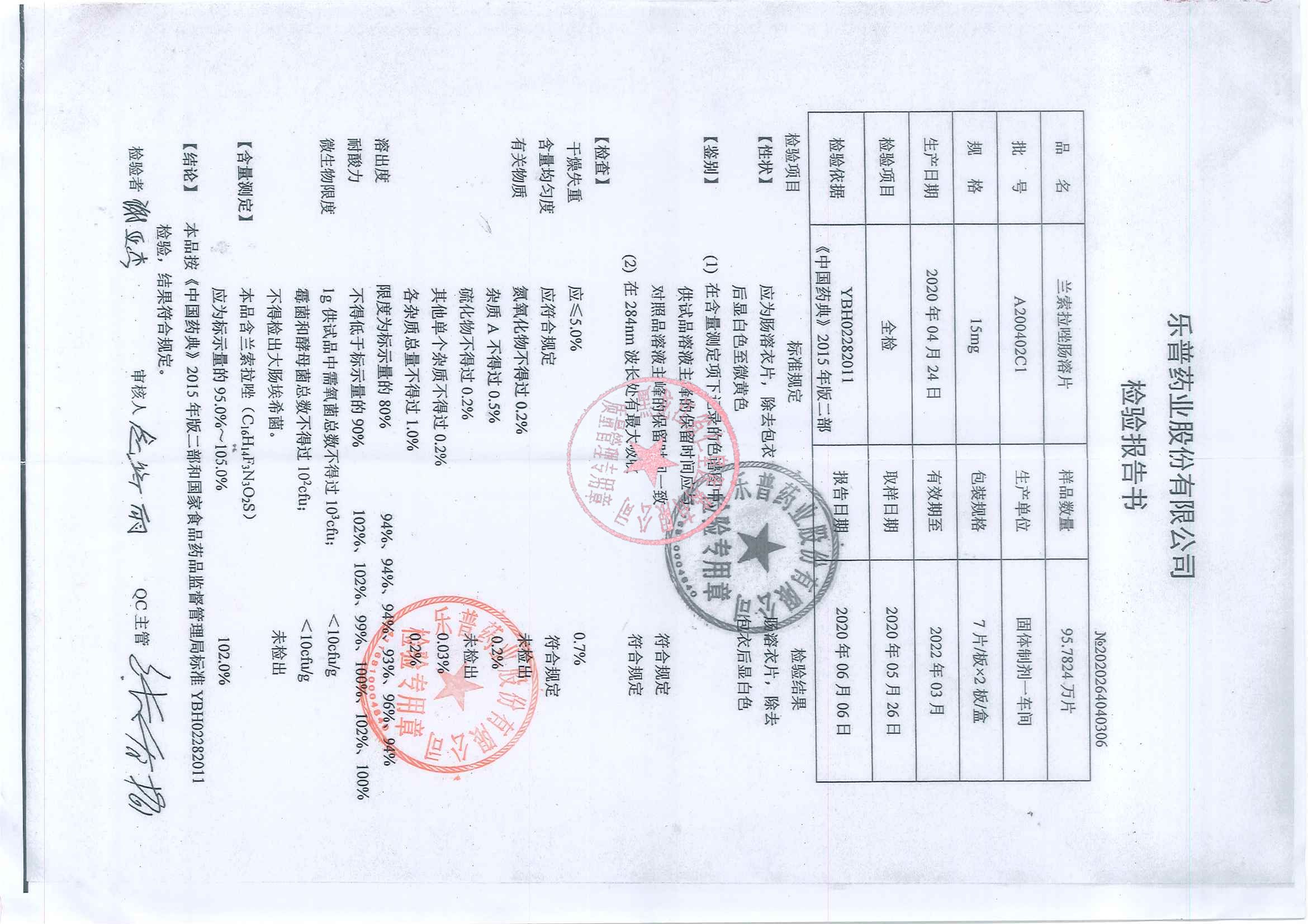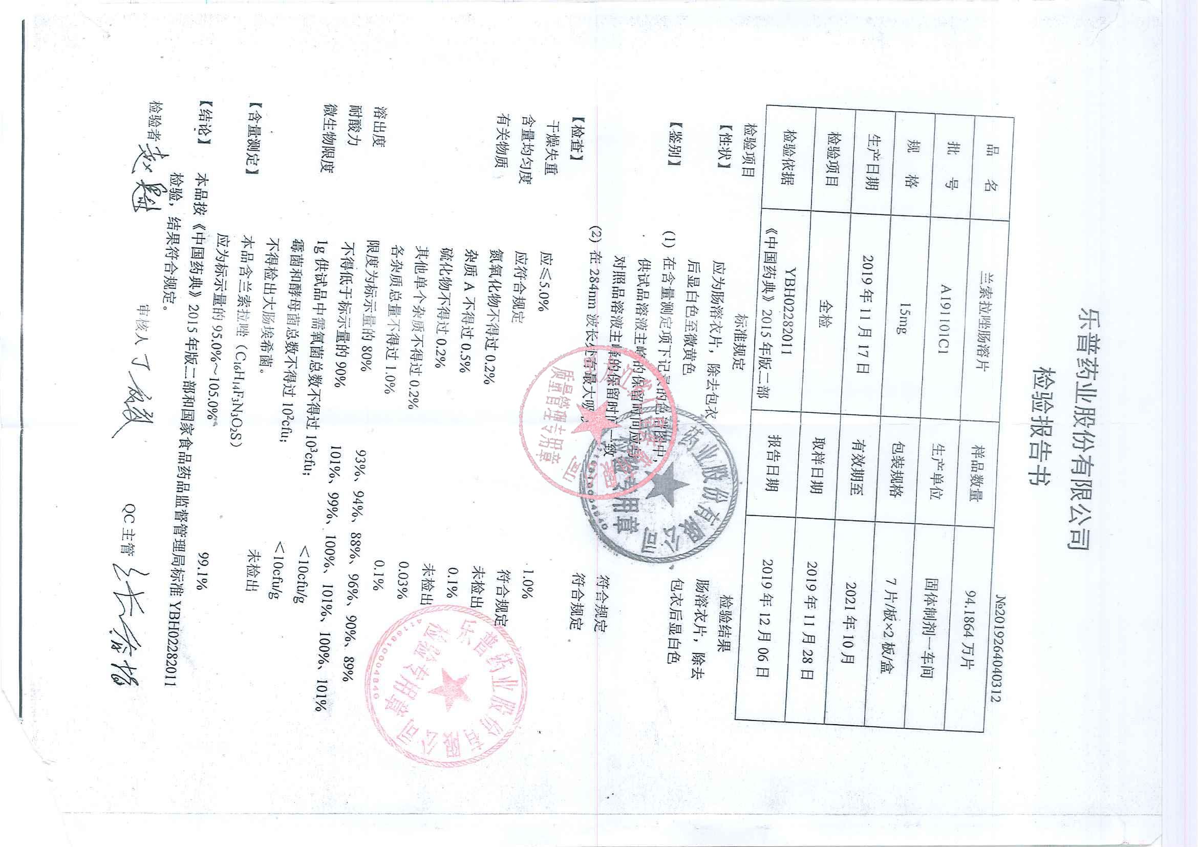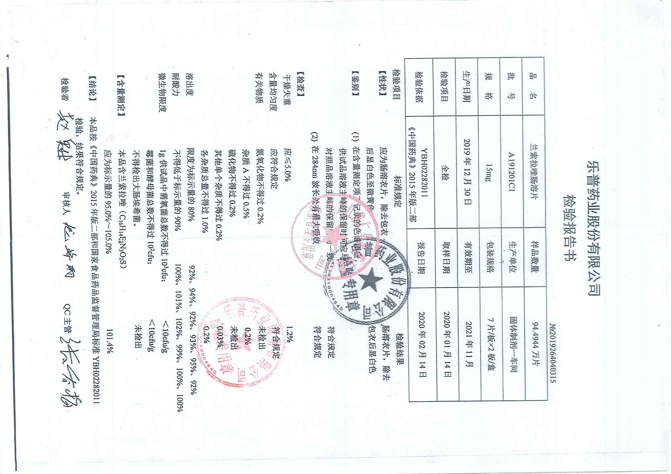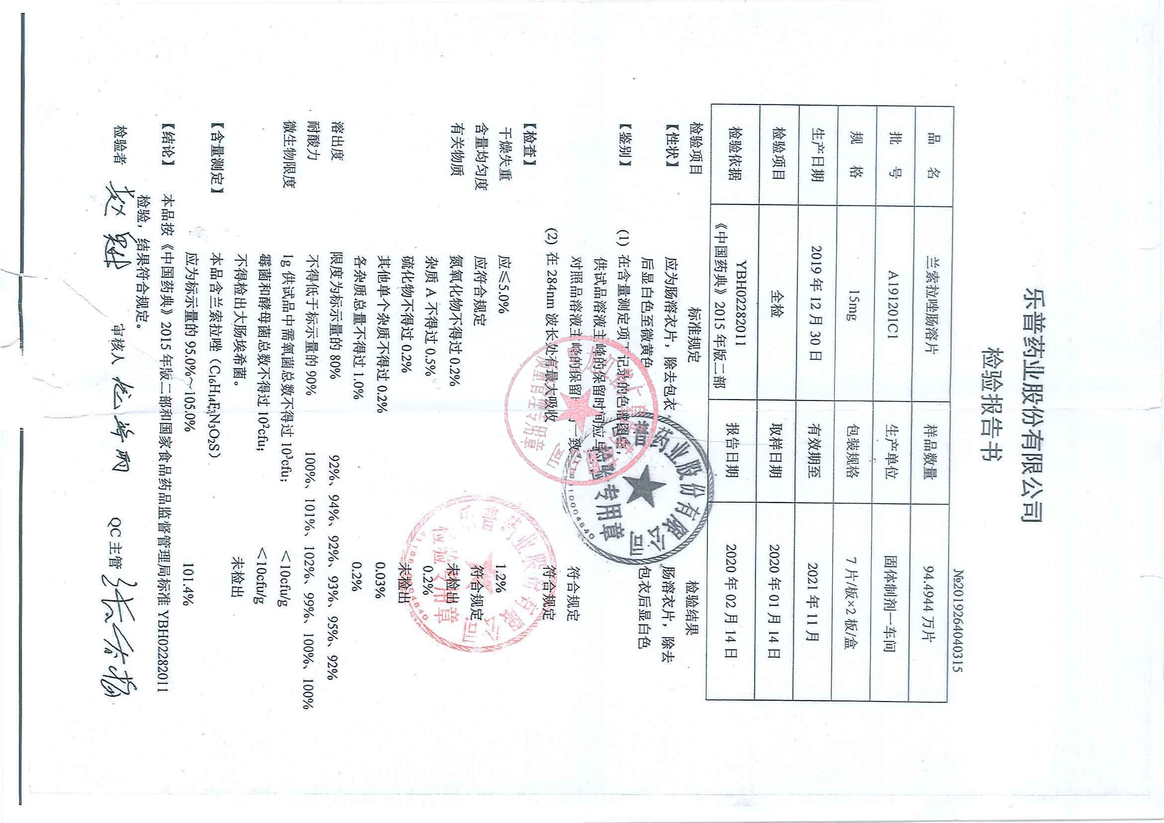 _兰索拉唑肠溶片A1