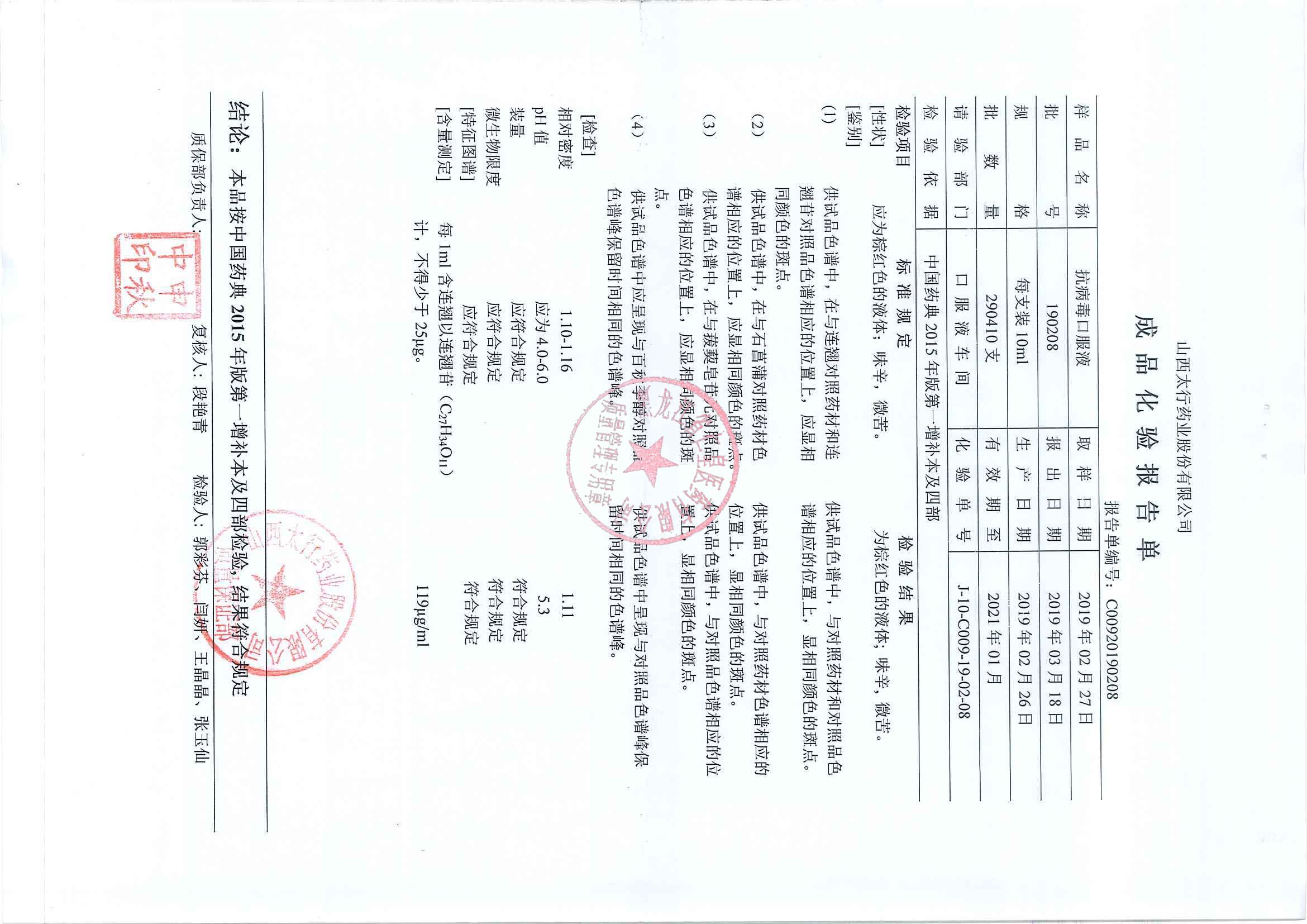 _抗病毒口服液190