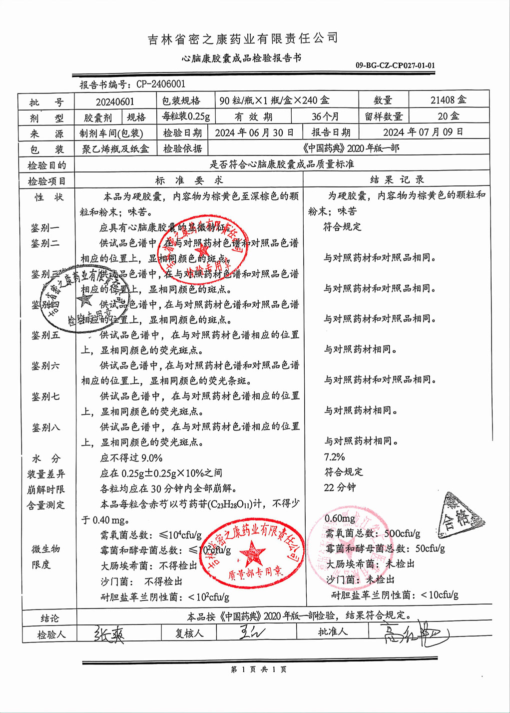 心脑康胶囊20240