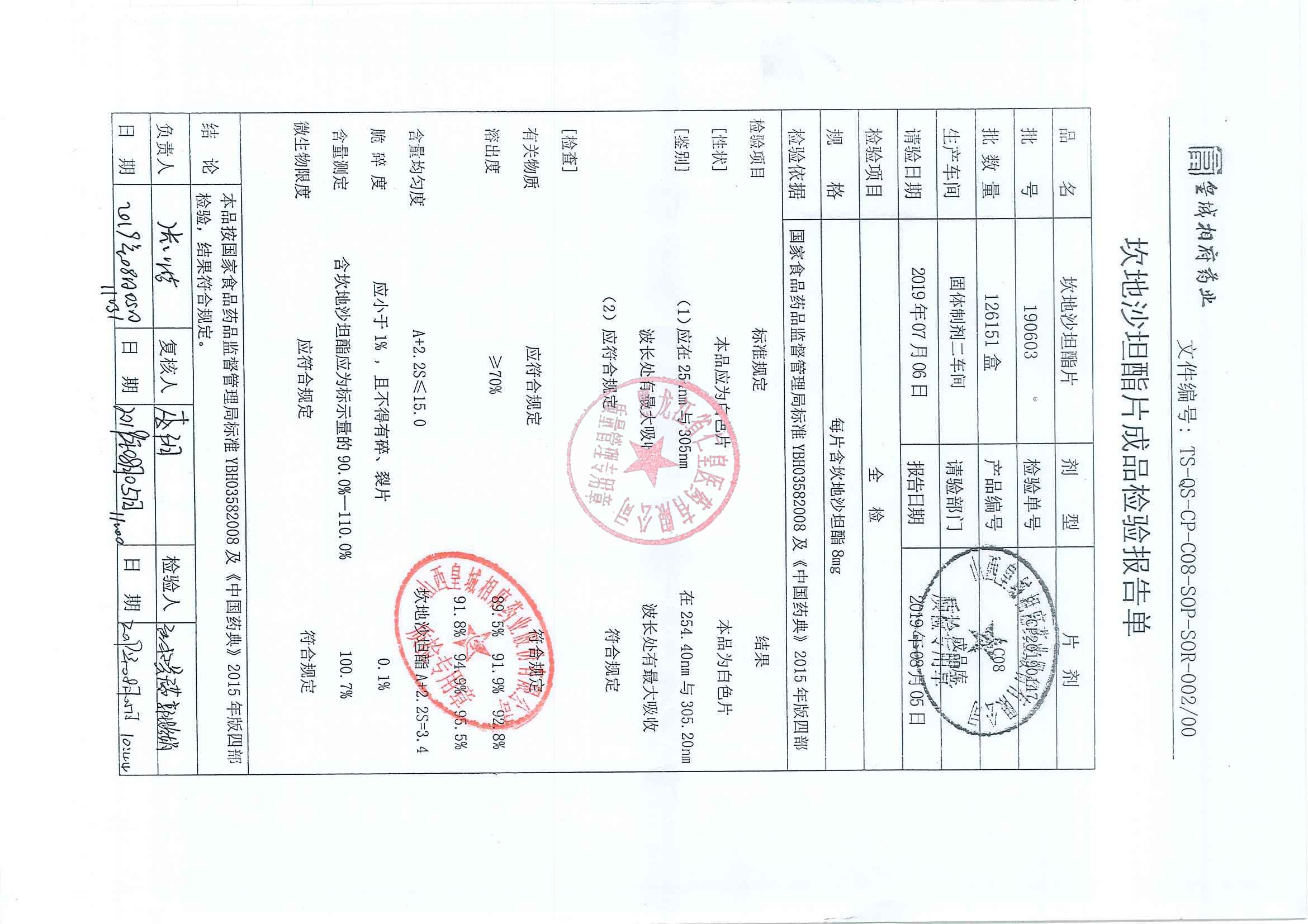 _坎地沙坦酯片190