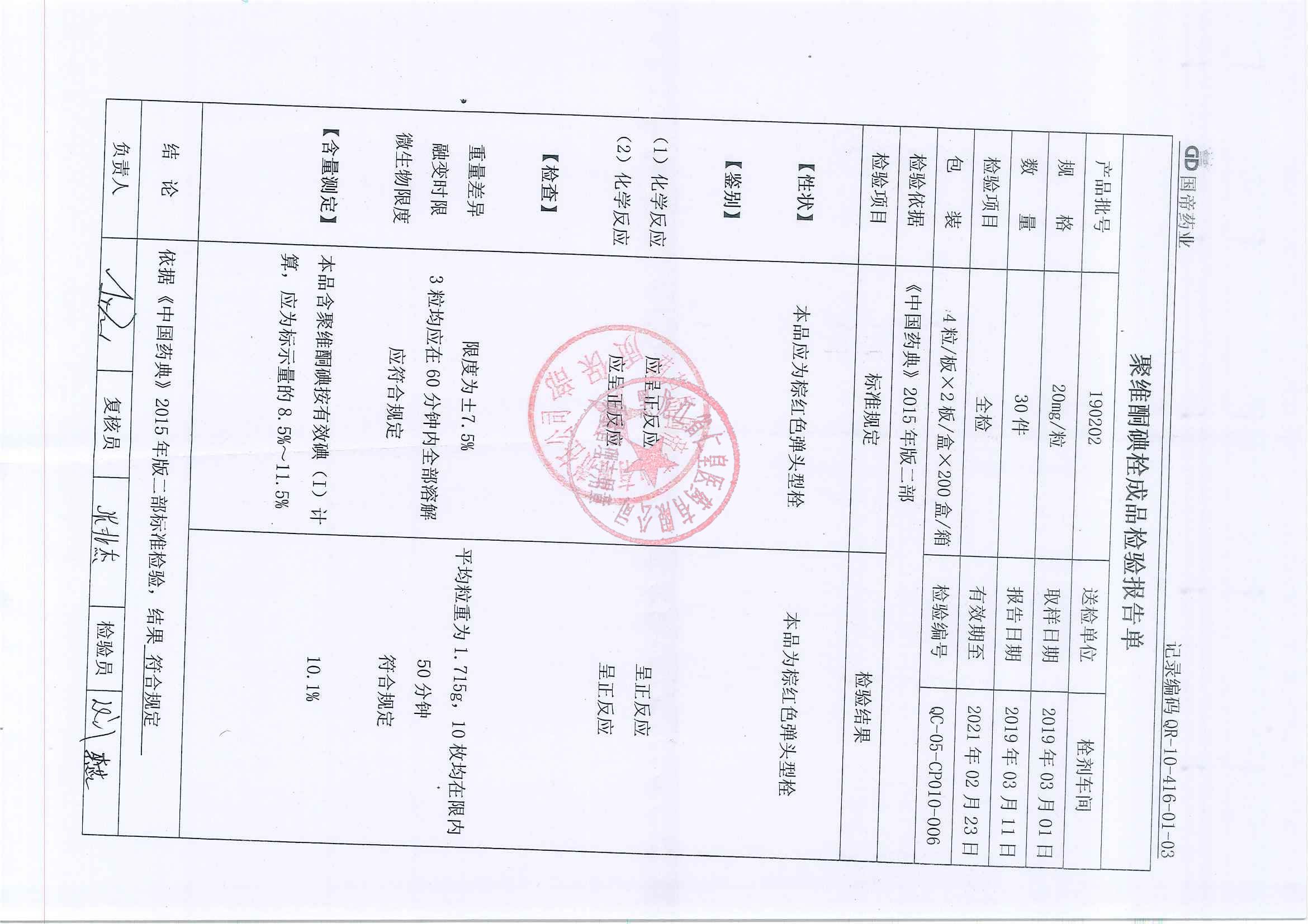 _聚维酮碘栓1905