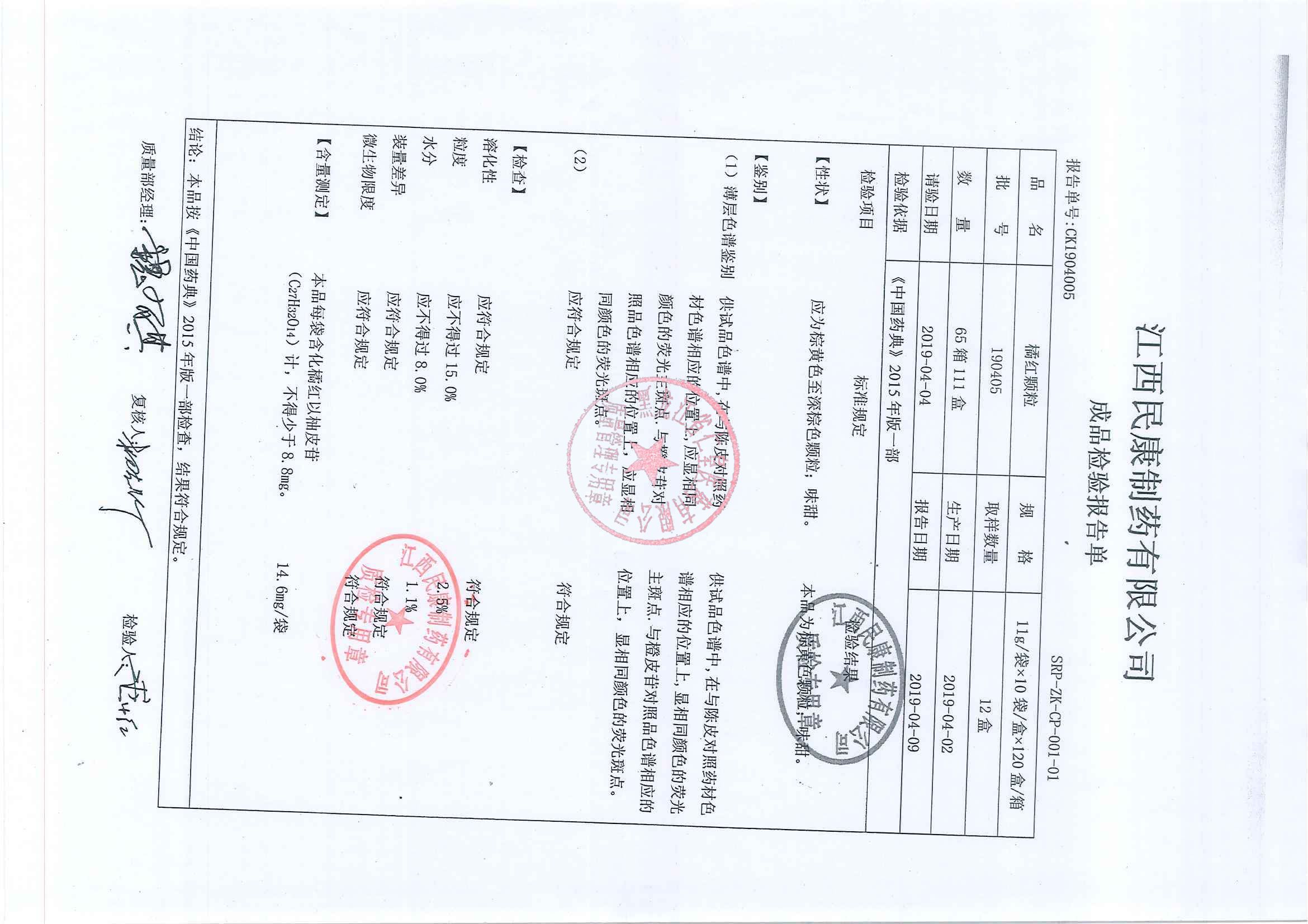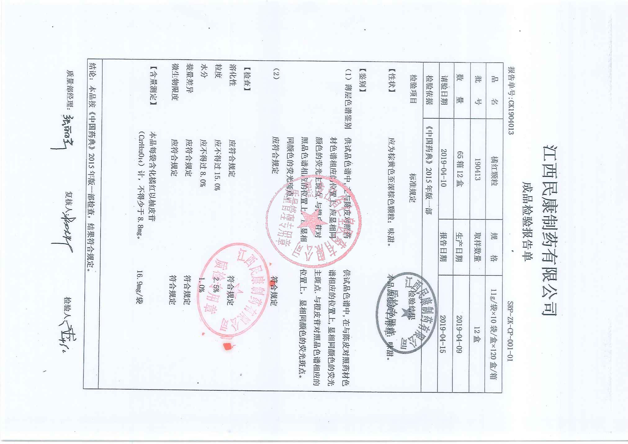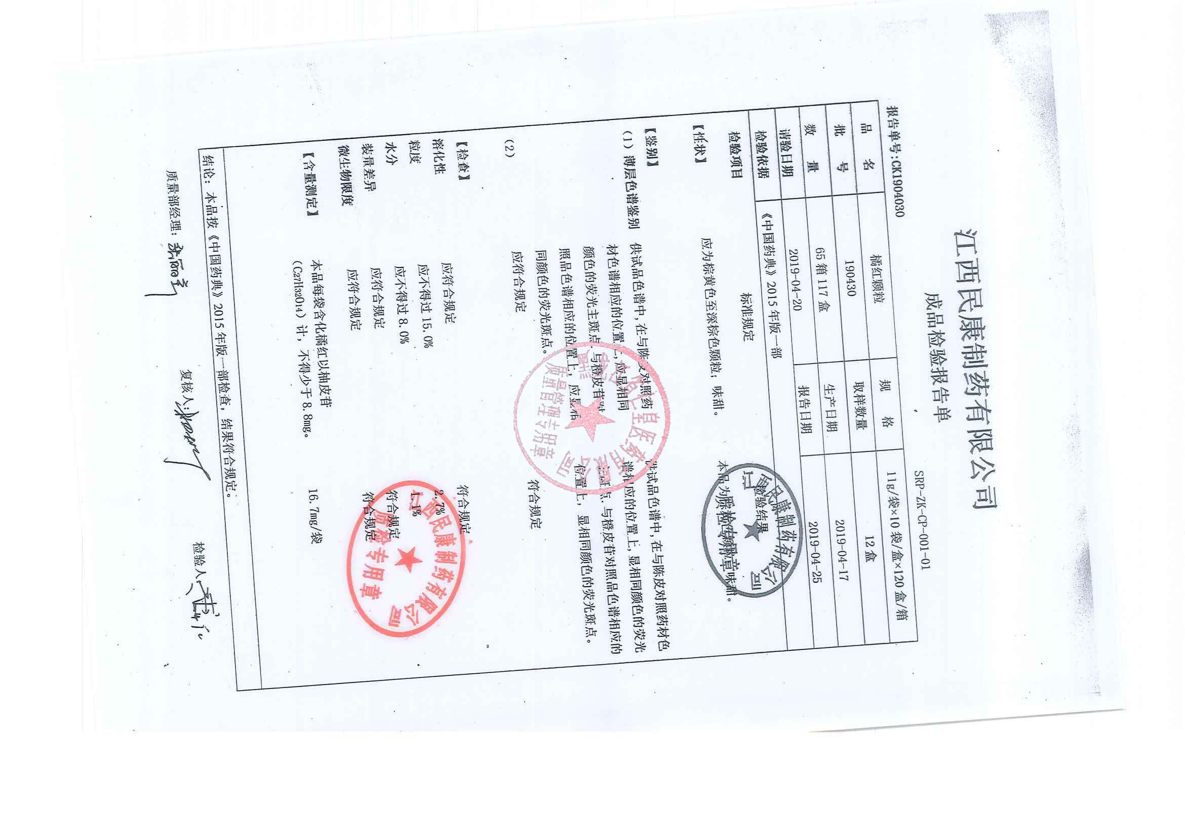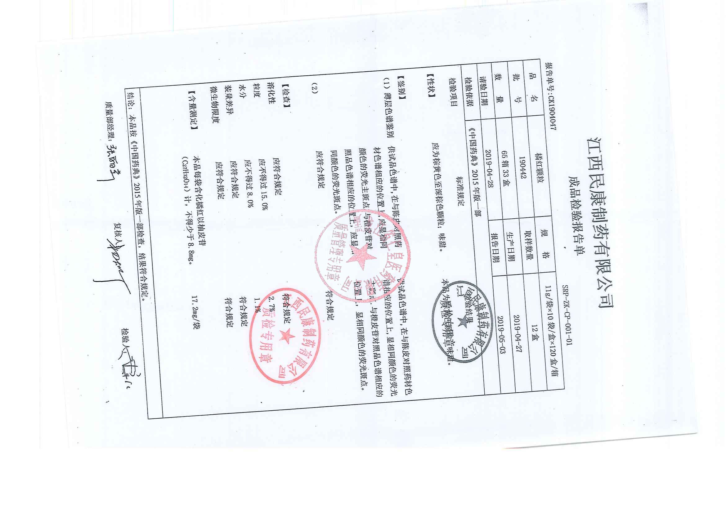 _橘红颗粒19041