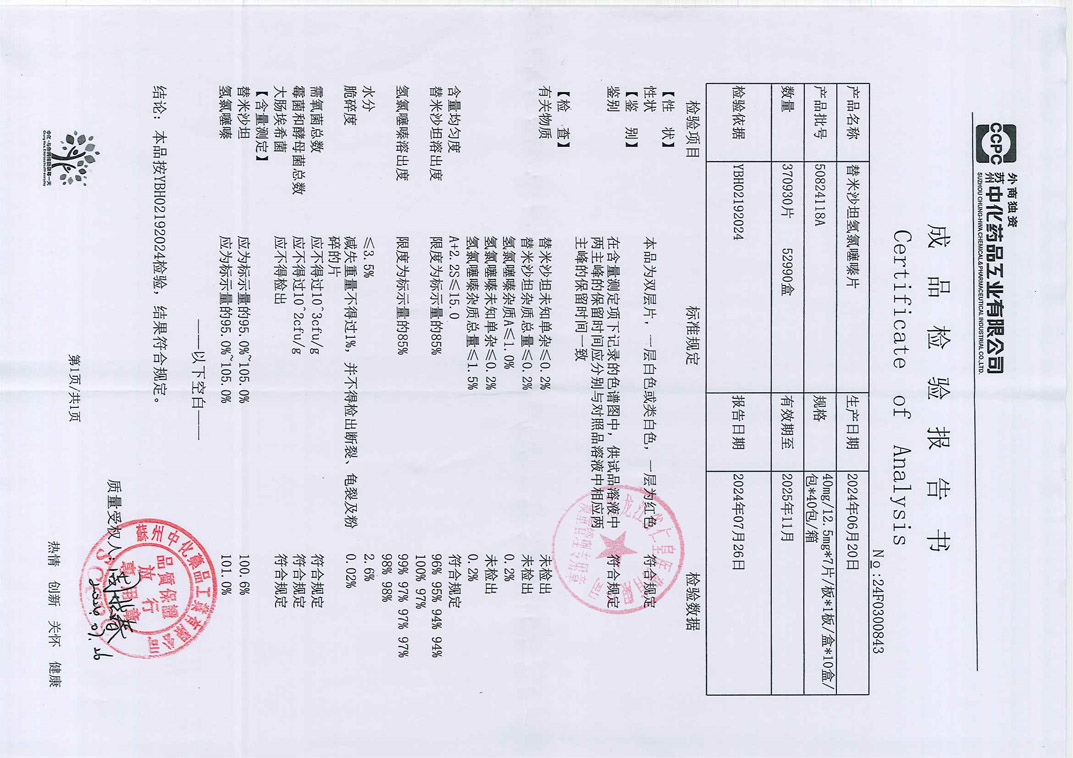 替米沙坦氢氯噻嗪片5