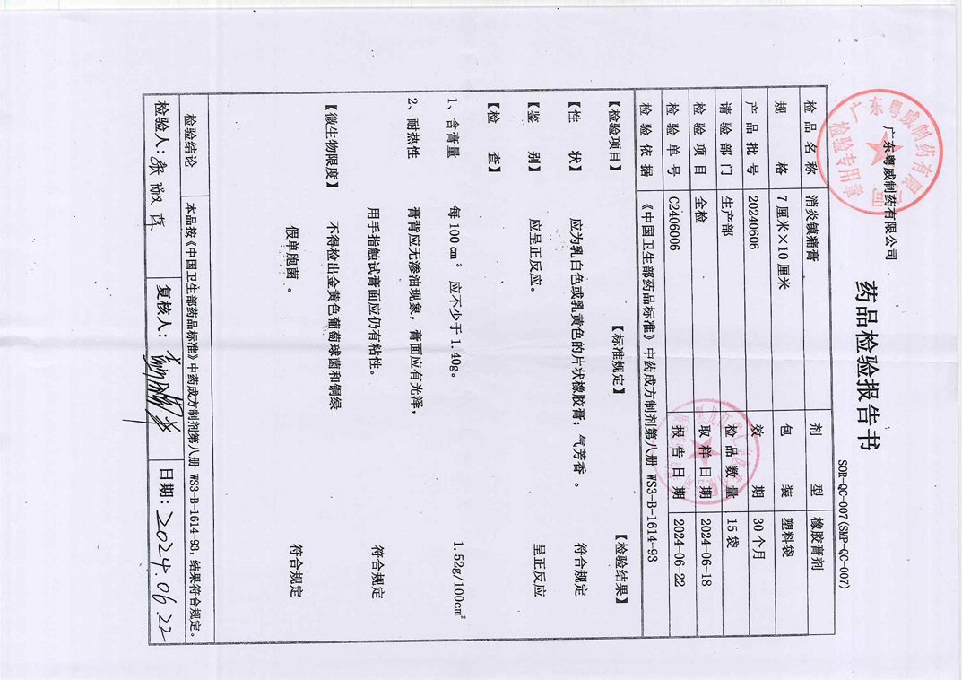 消炎镇痛膏20240