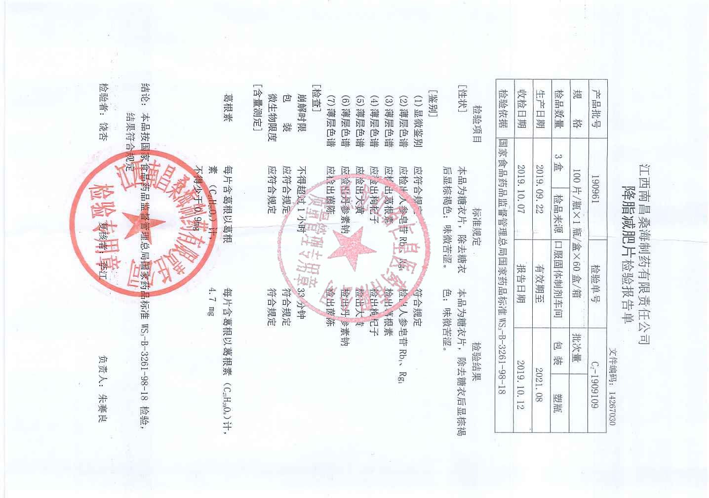 _降脂减肥片1909