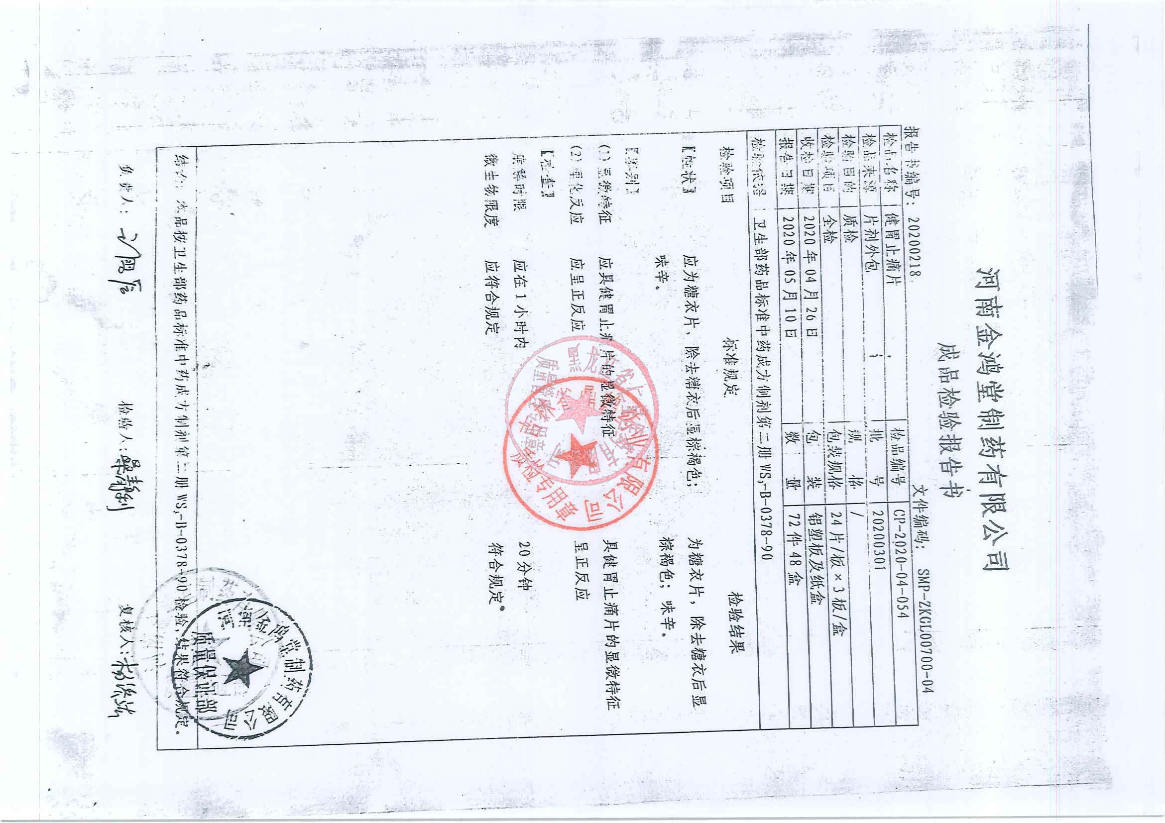 _健胃止痛片2020