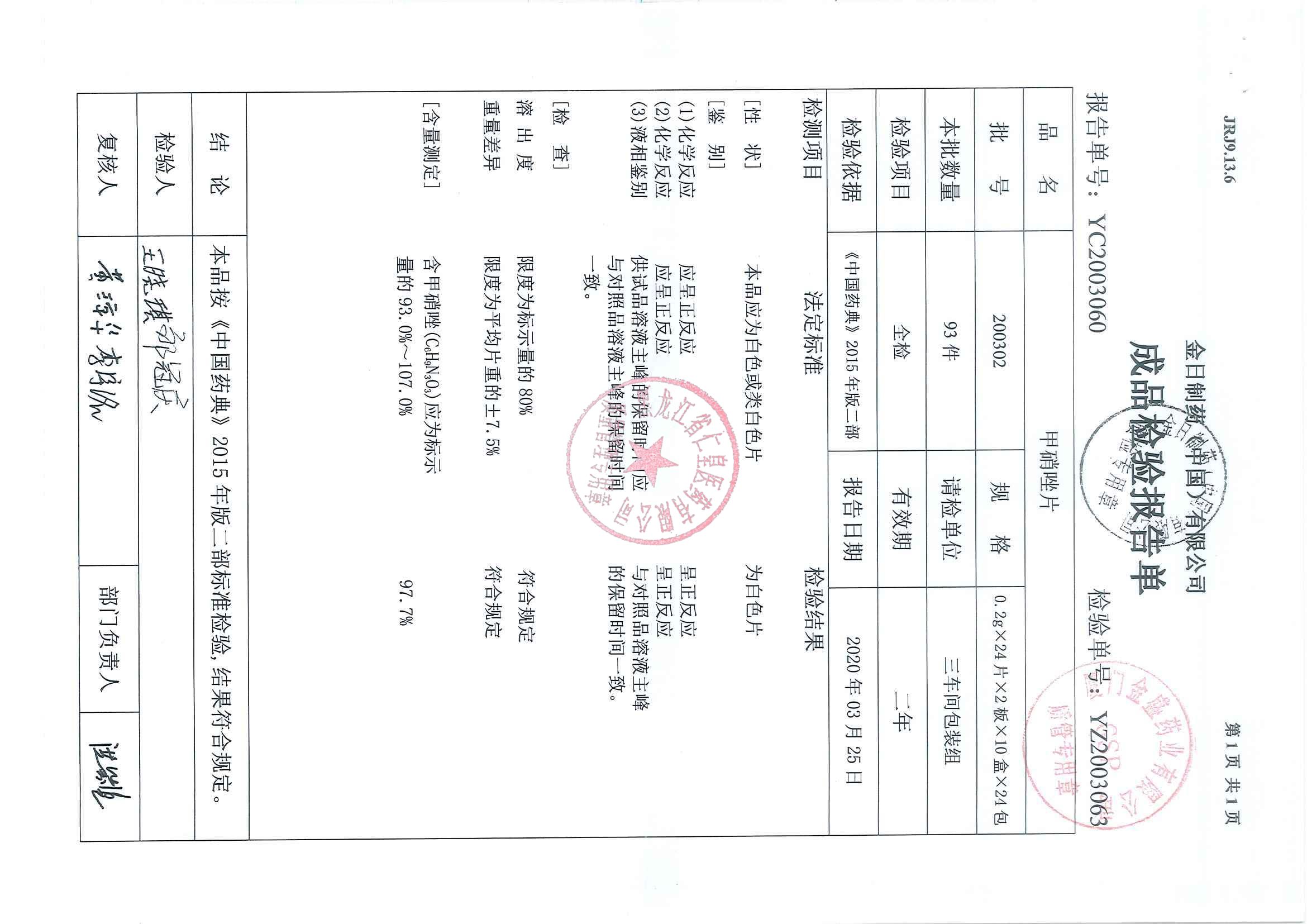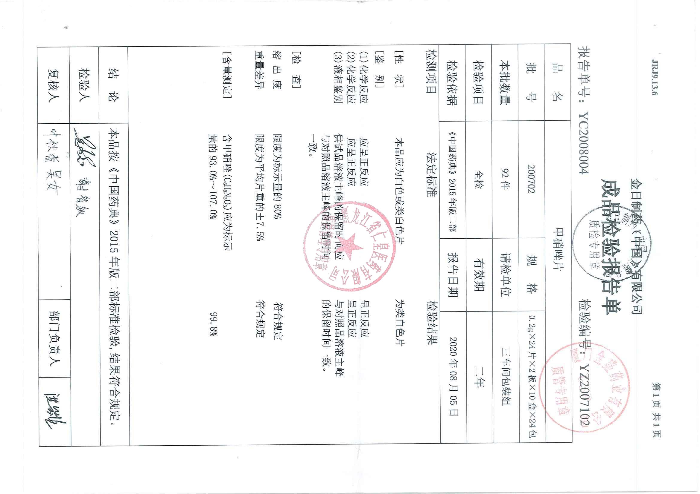_甲硝唑片20070