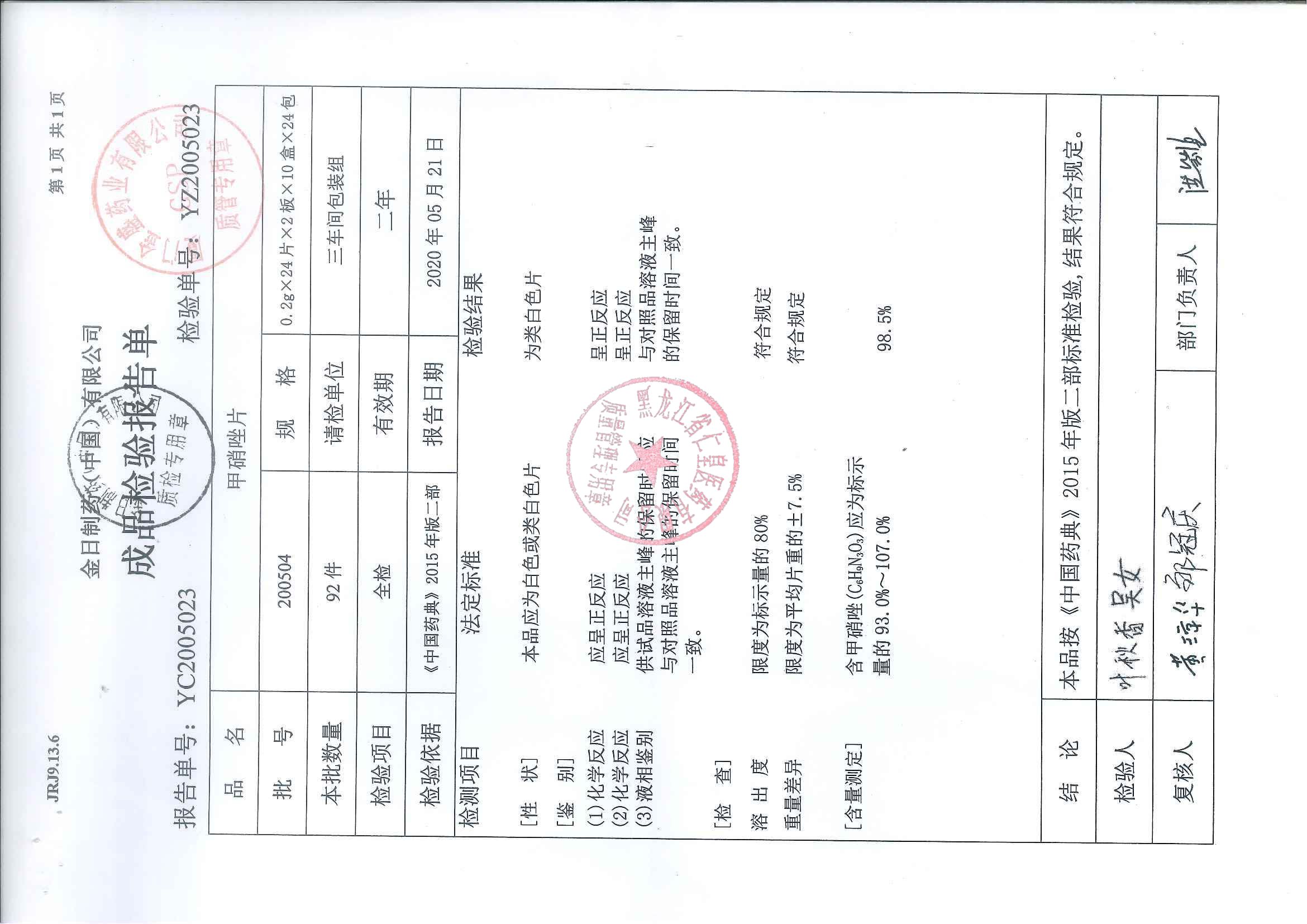 _甲硝唑片20050