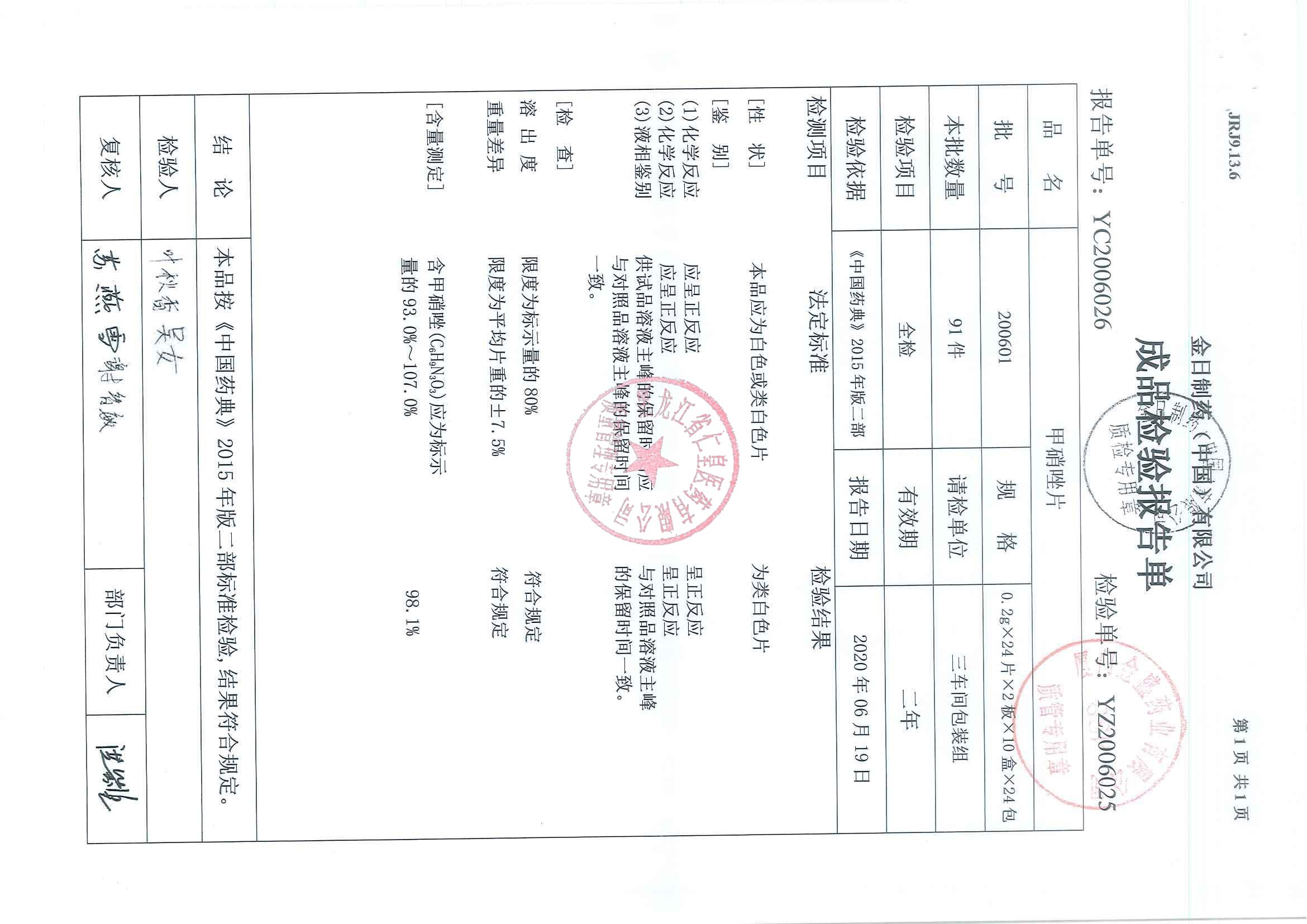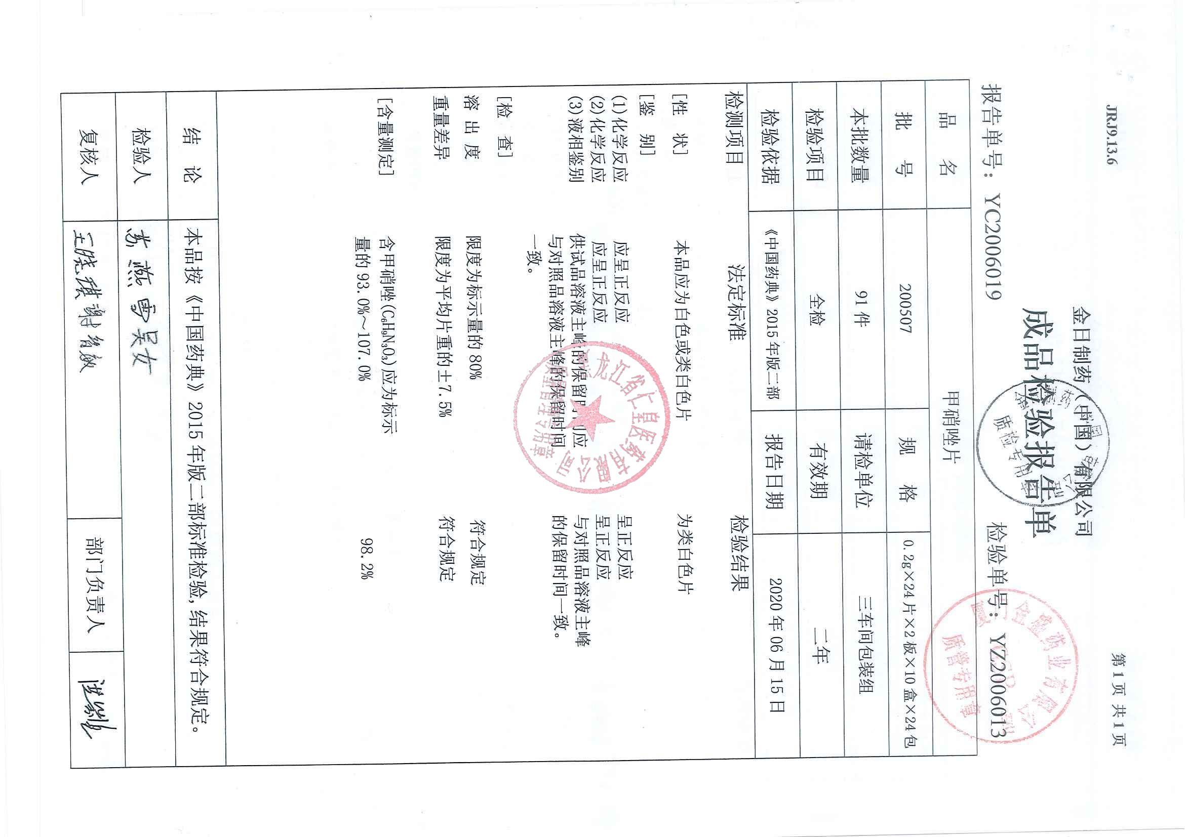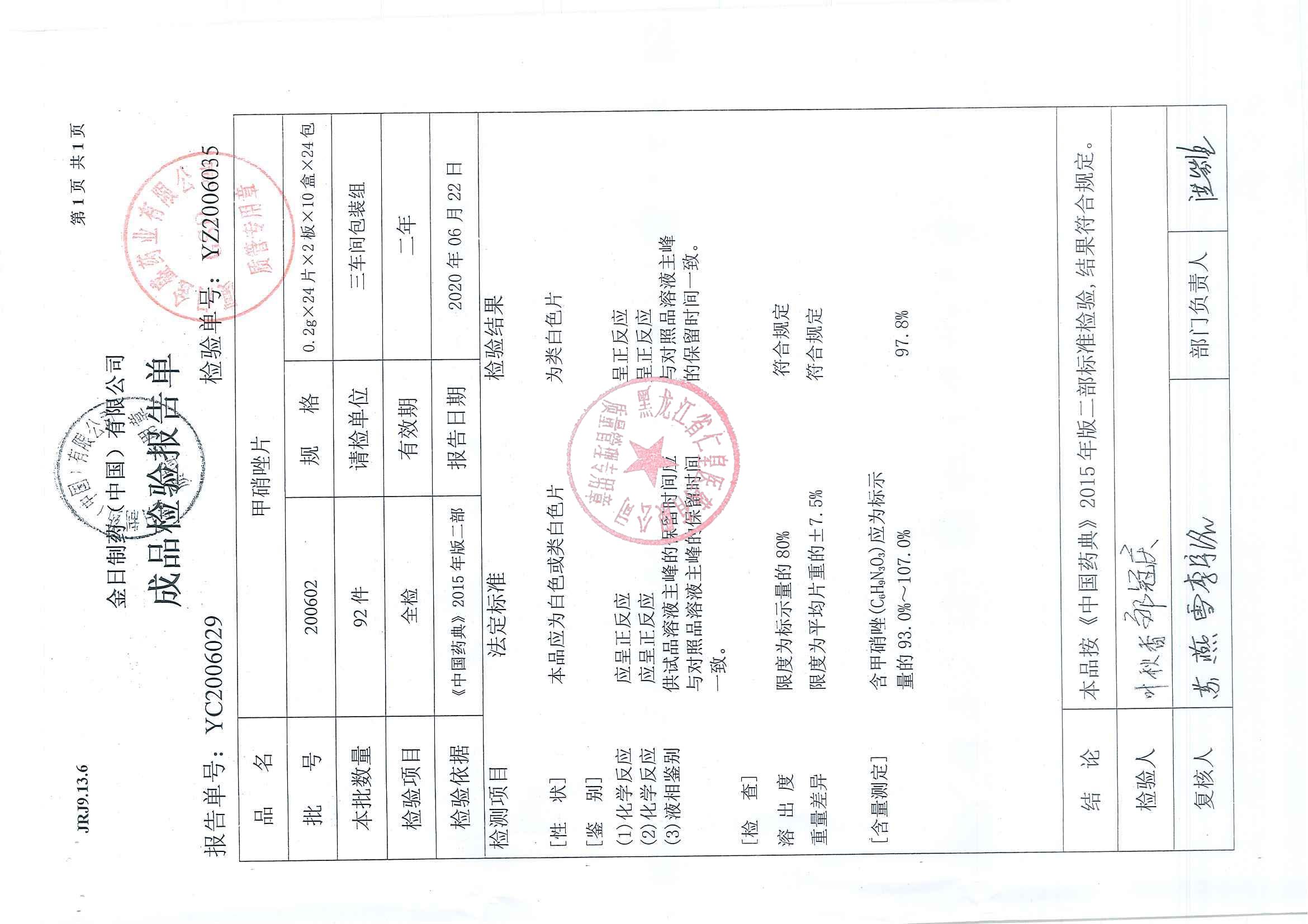 _甲硝唑片20060