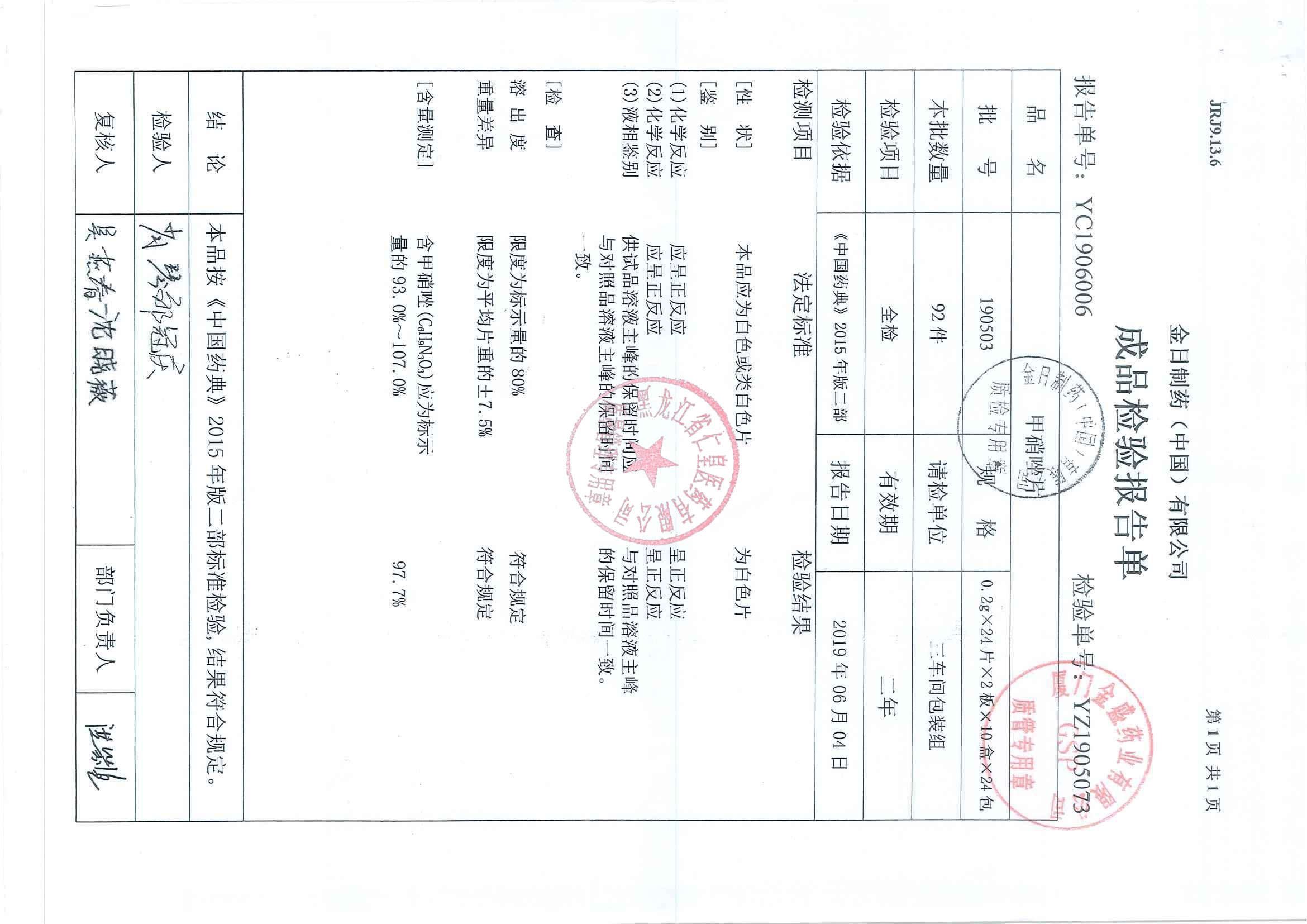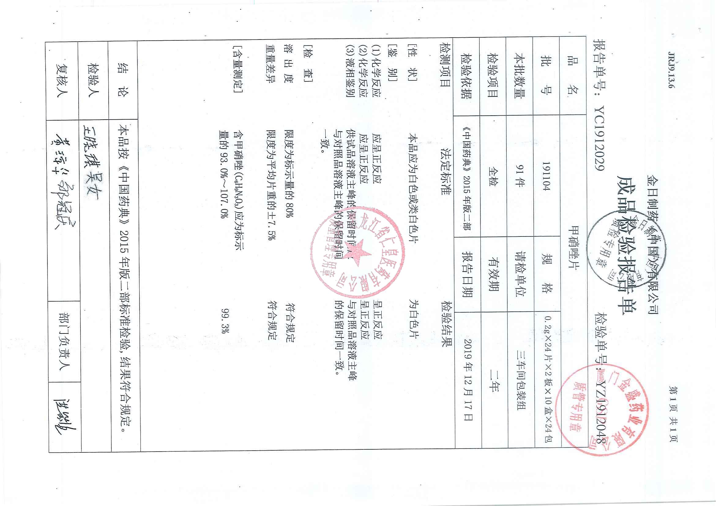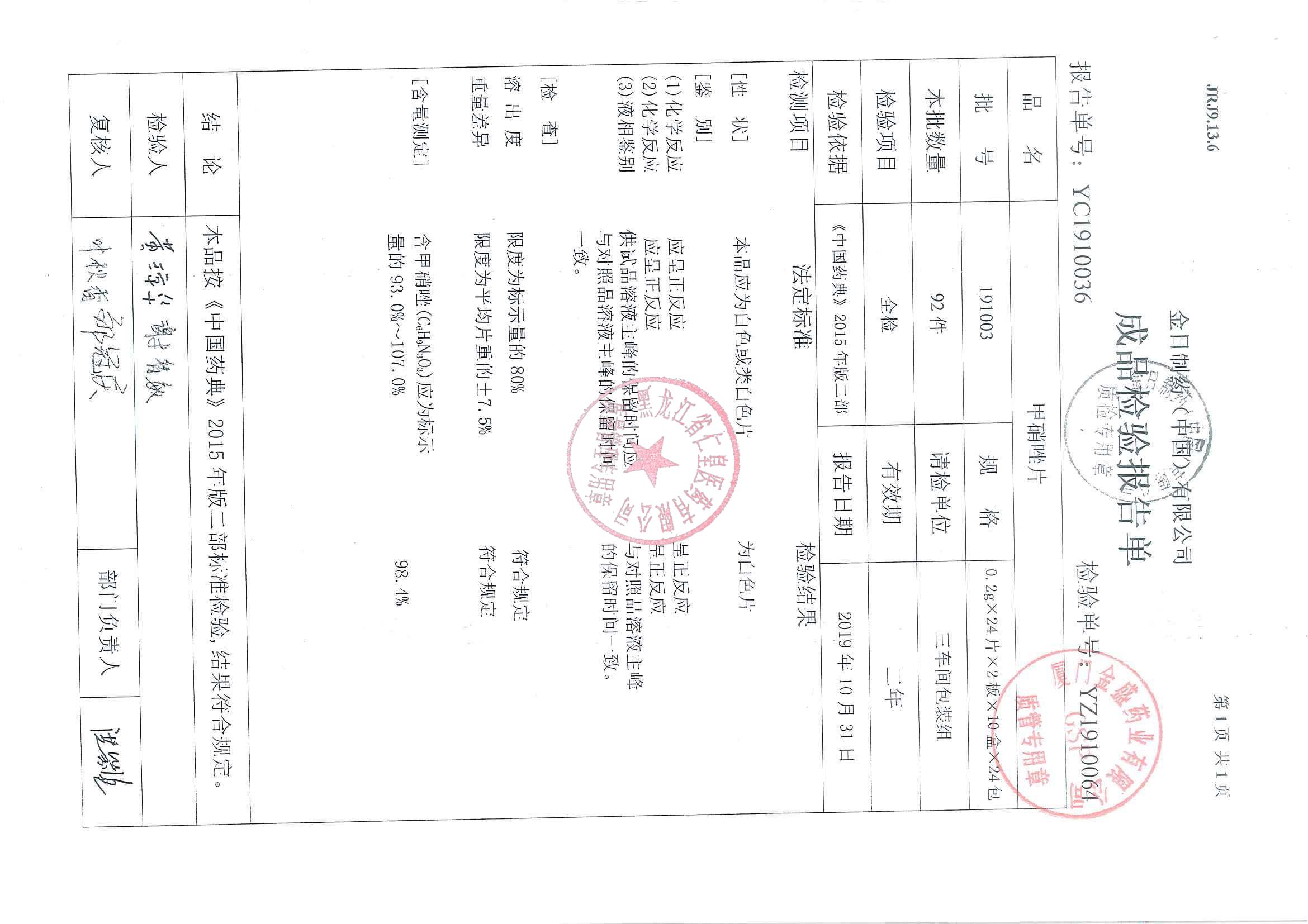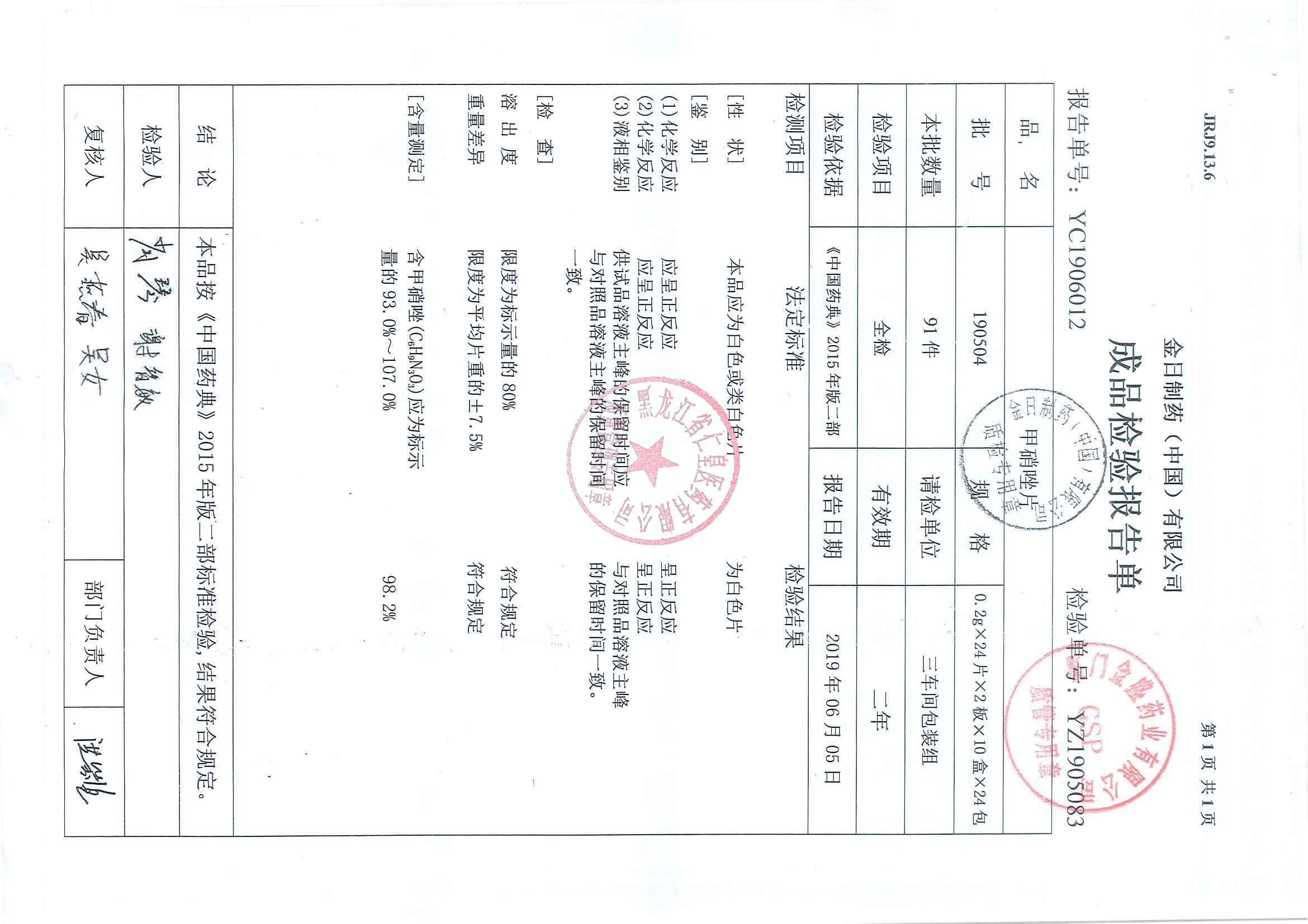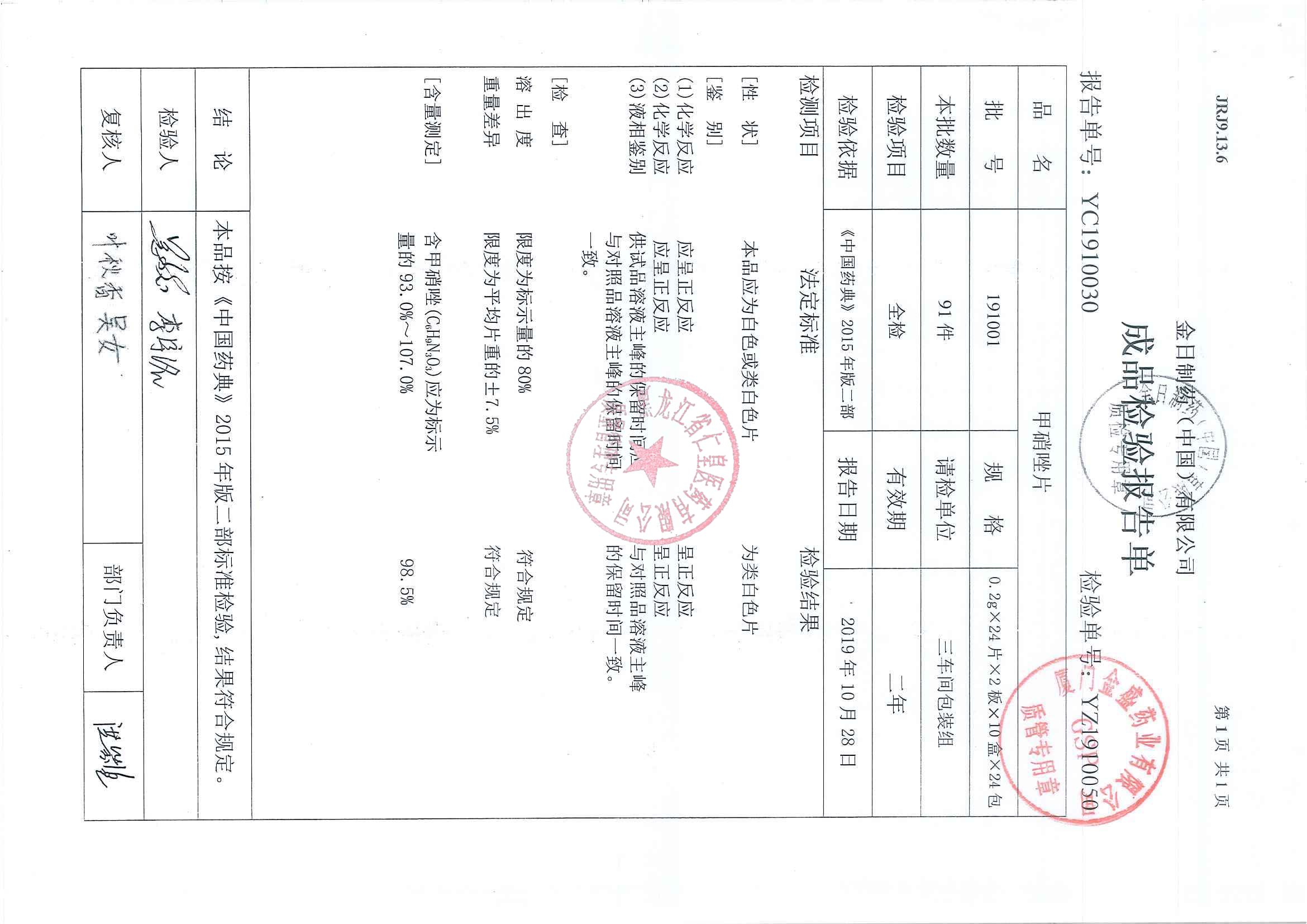 _甲硝唑片19100