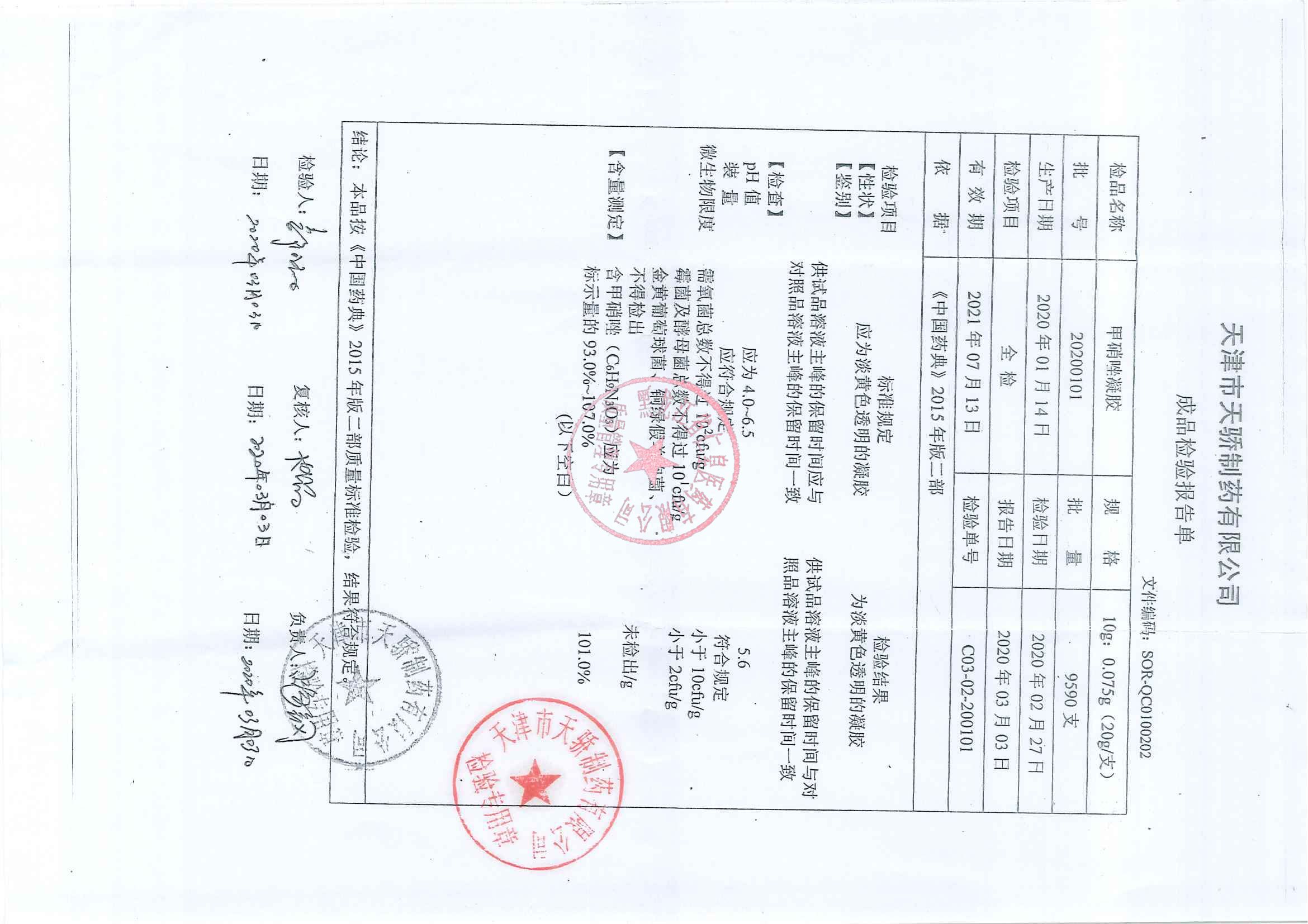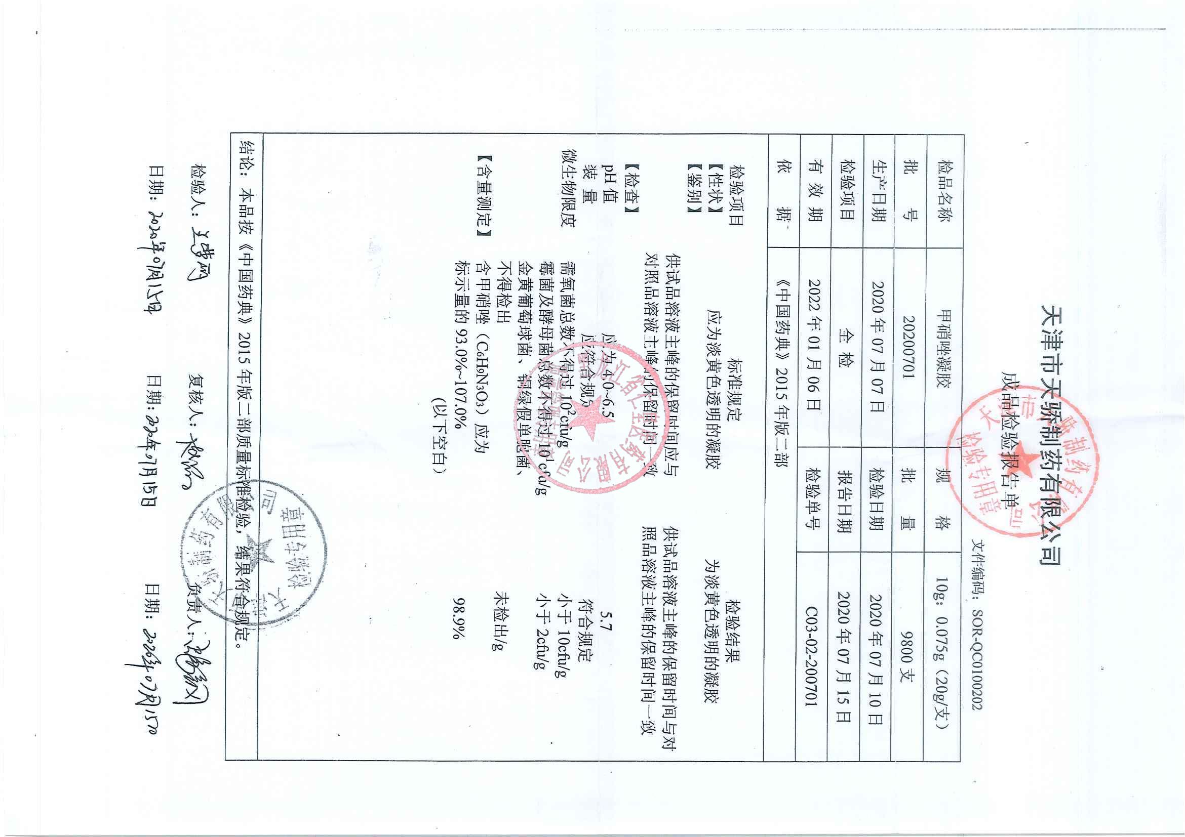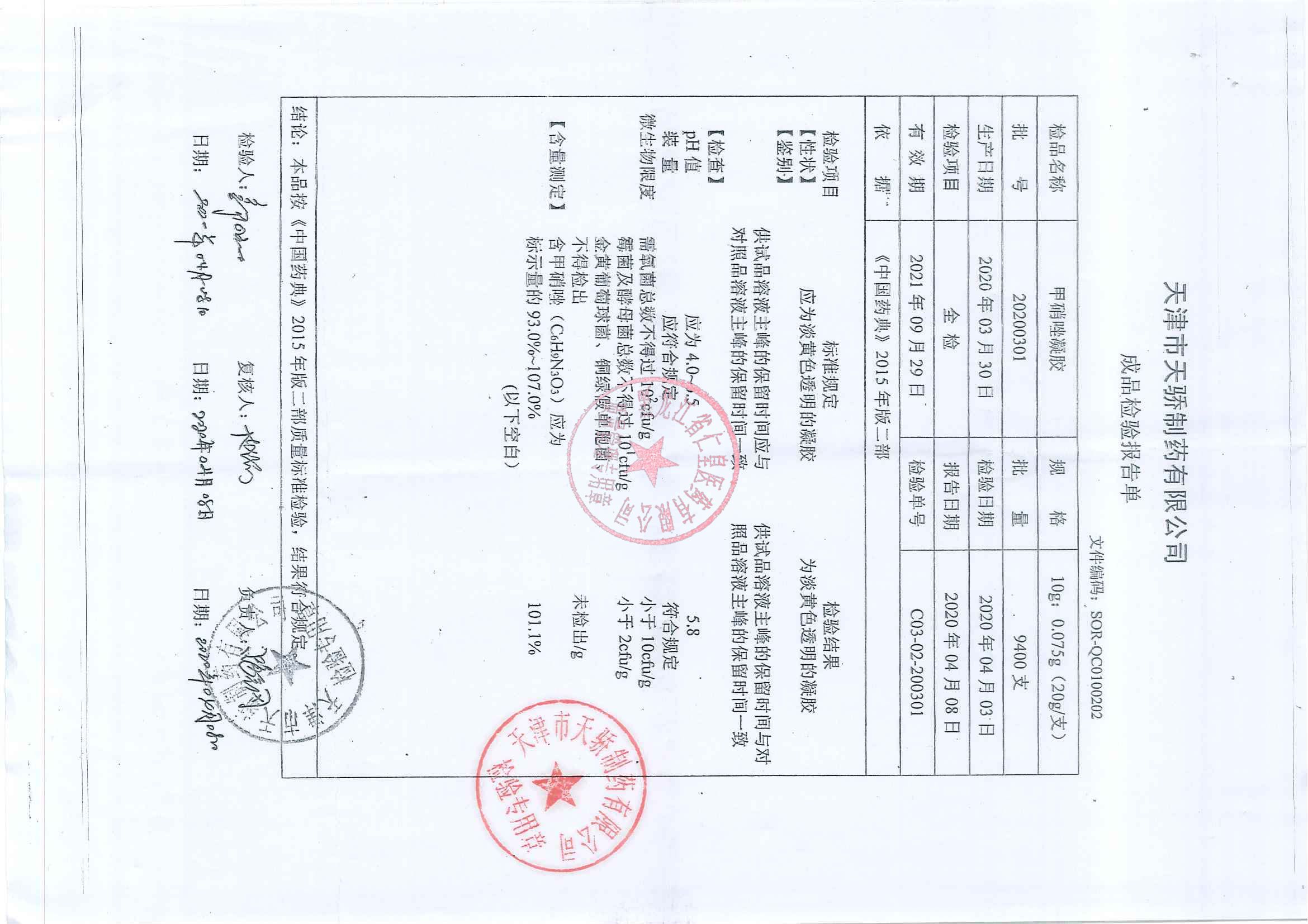 _甲硝唑凝胶2020
