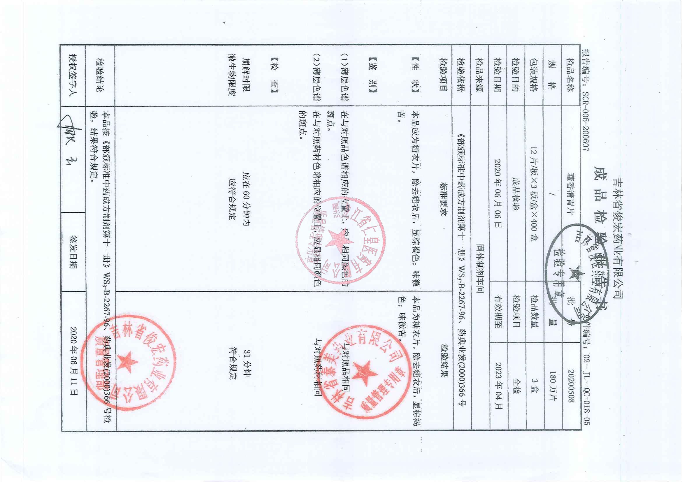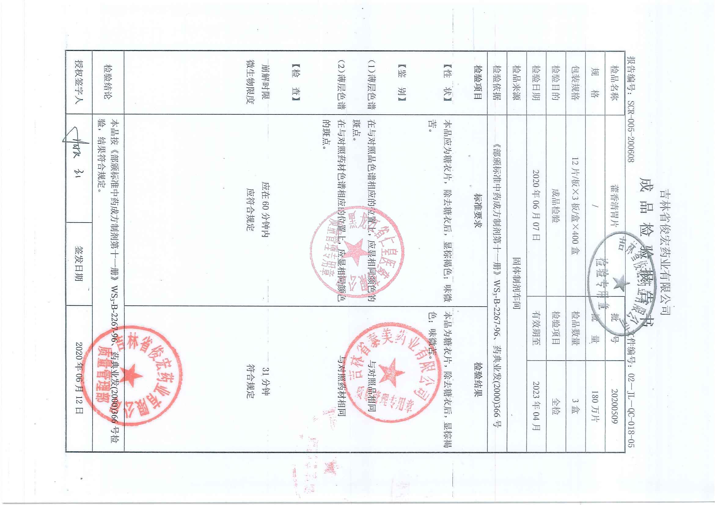 _藿香清胃片2020