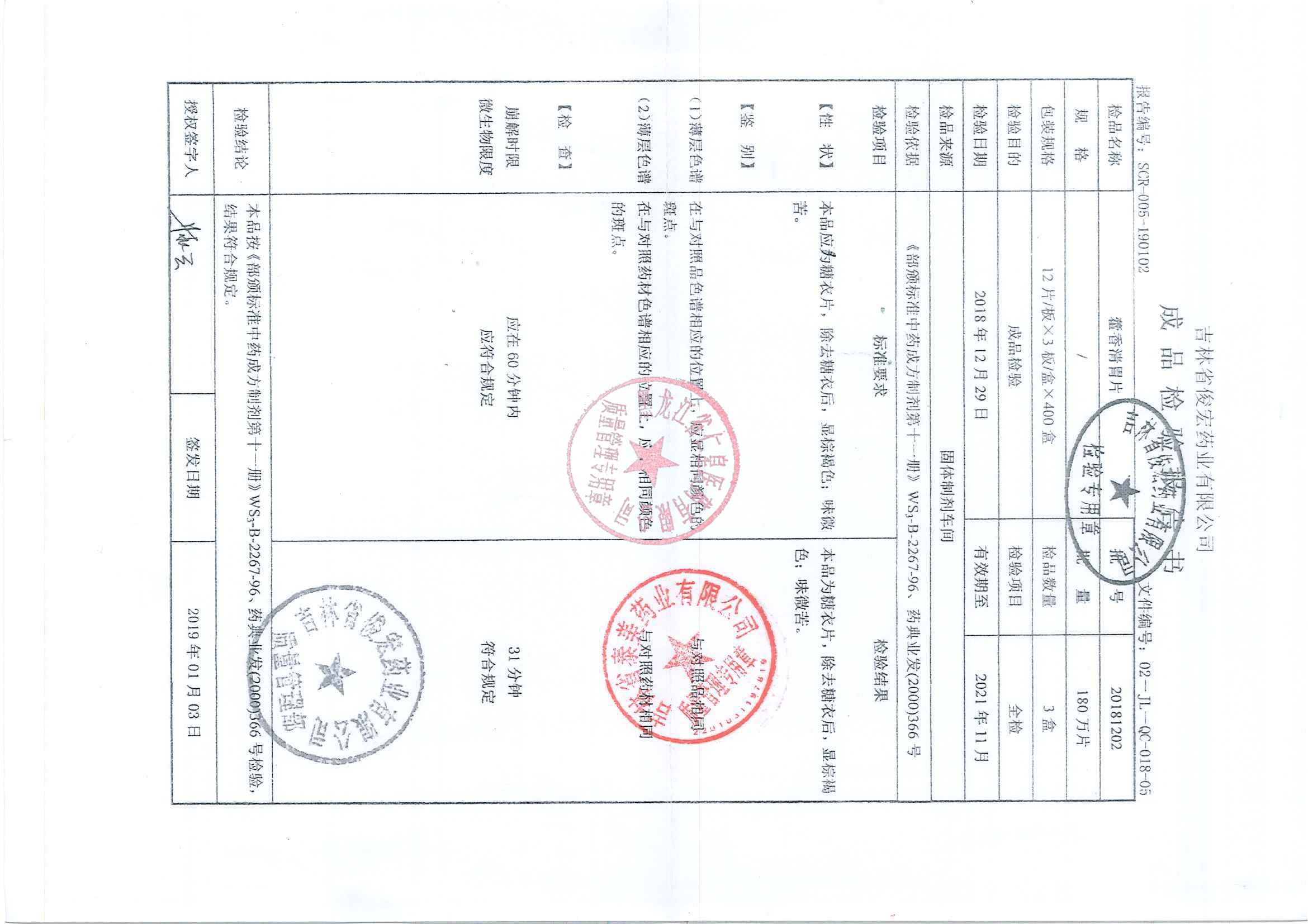 _藿香清胃片2018