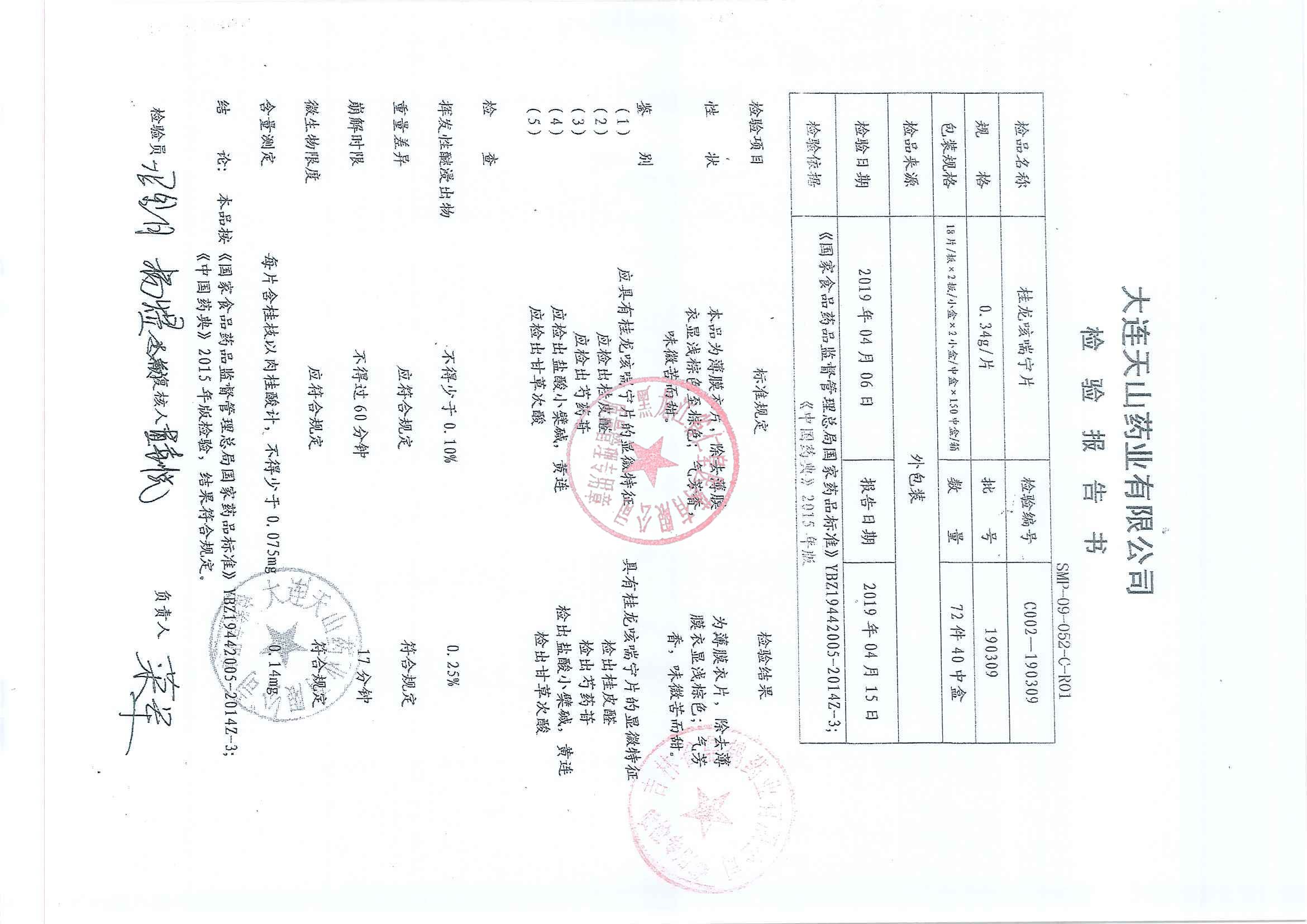 _桂龙咳喘宁片190