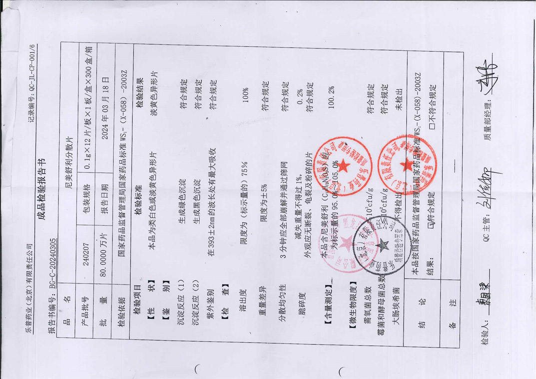 尼美舒利分散片240