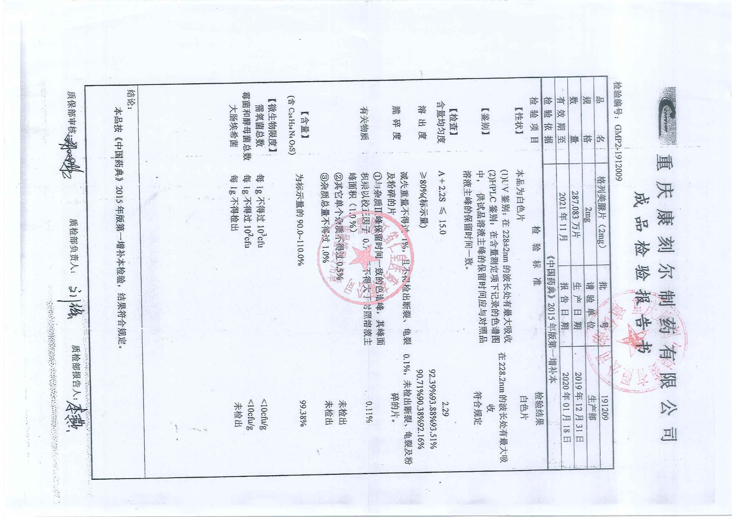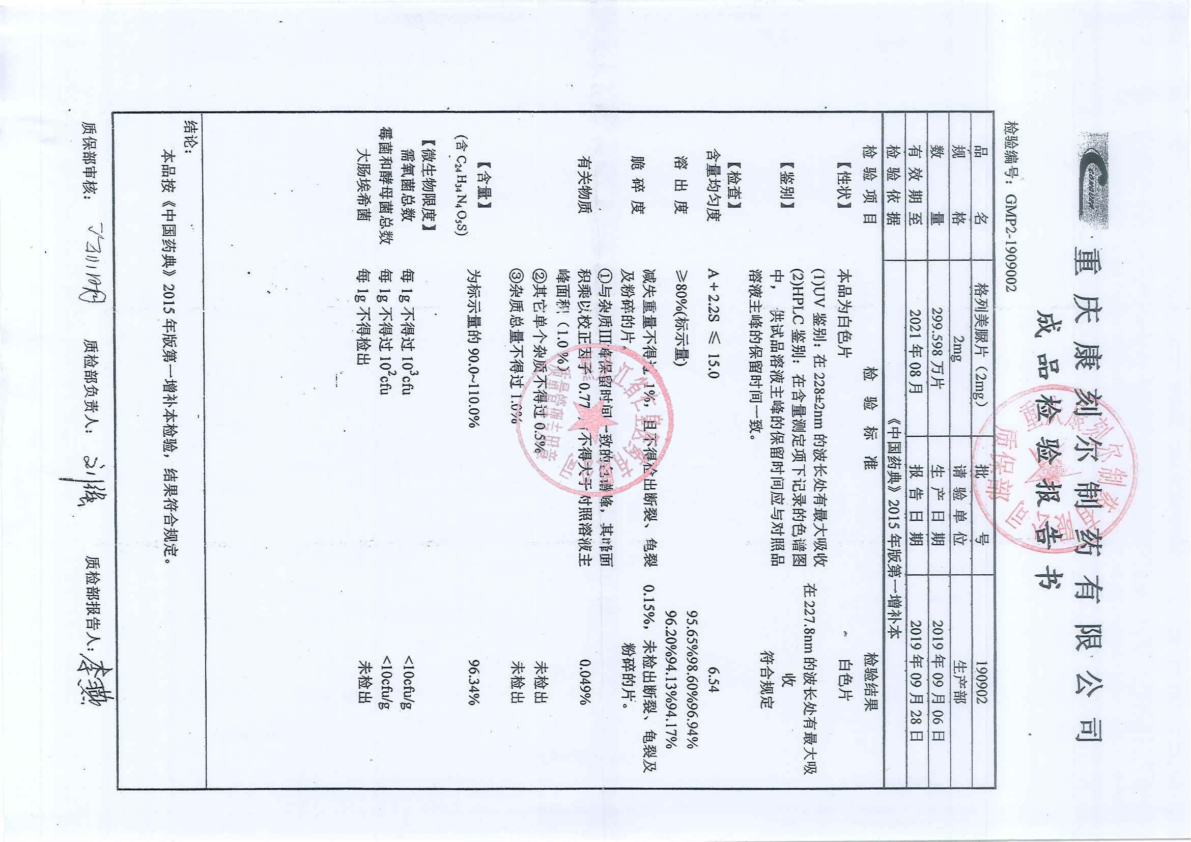_格列美脲片1909