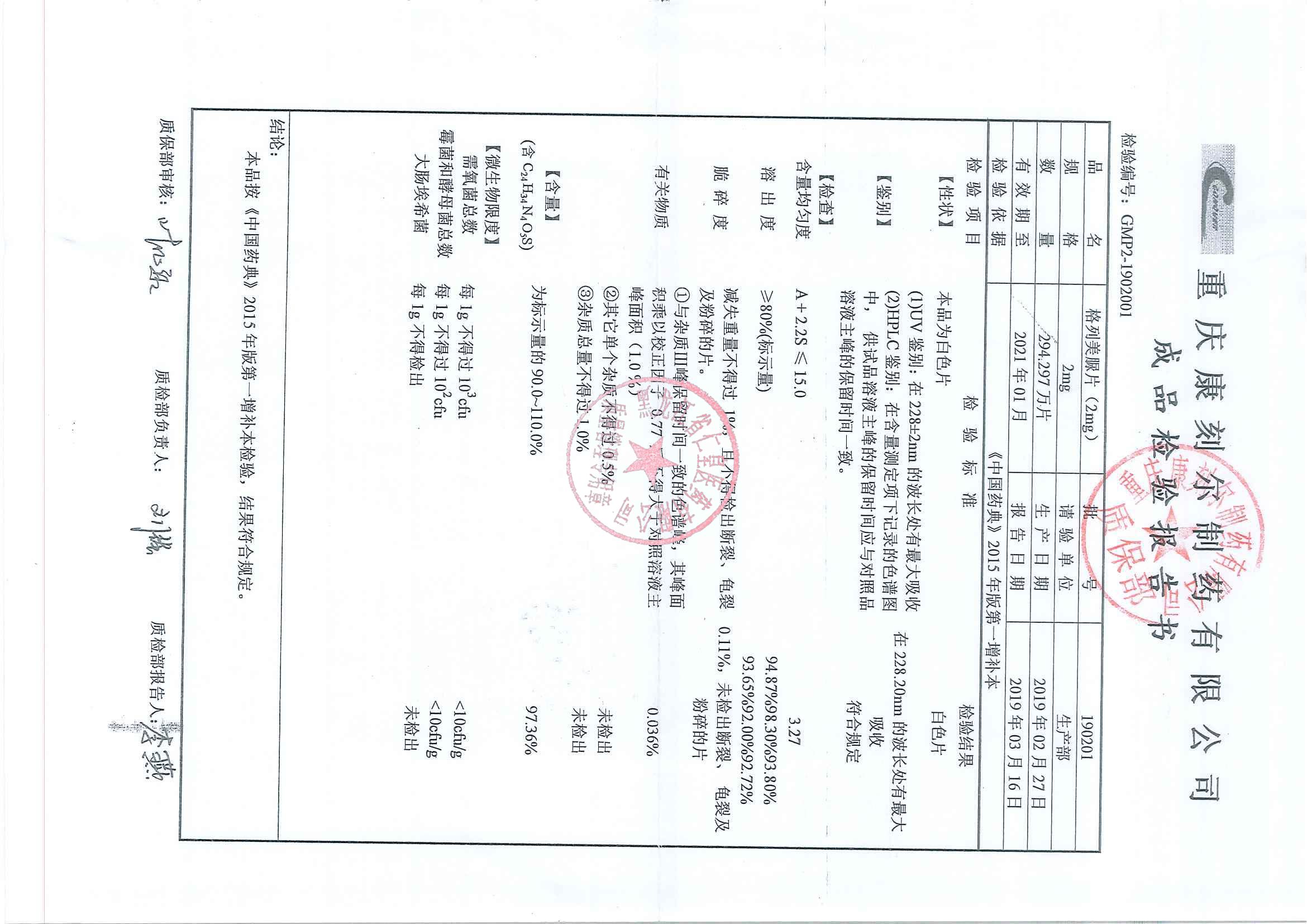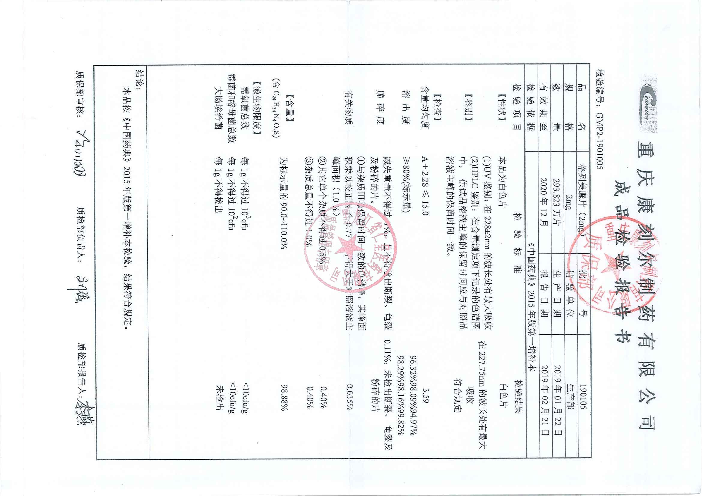 _格列美脲片1901
