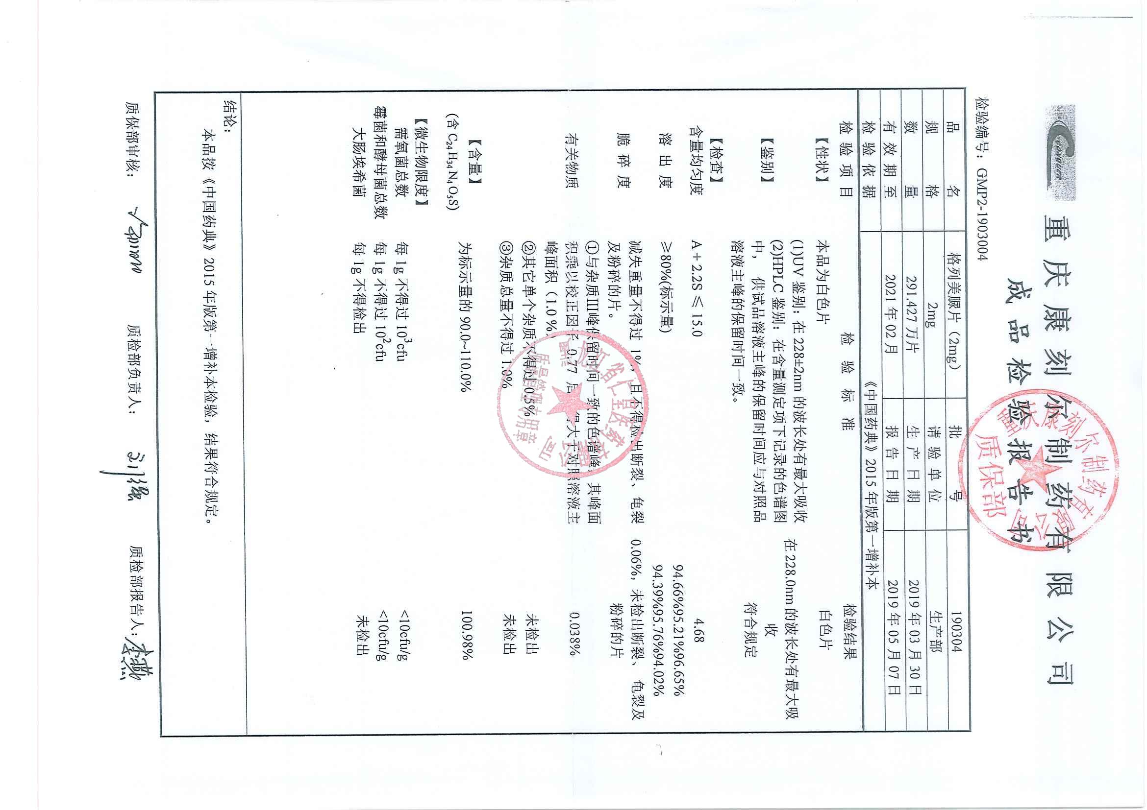 _格列美脲片1903