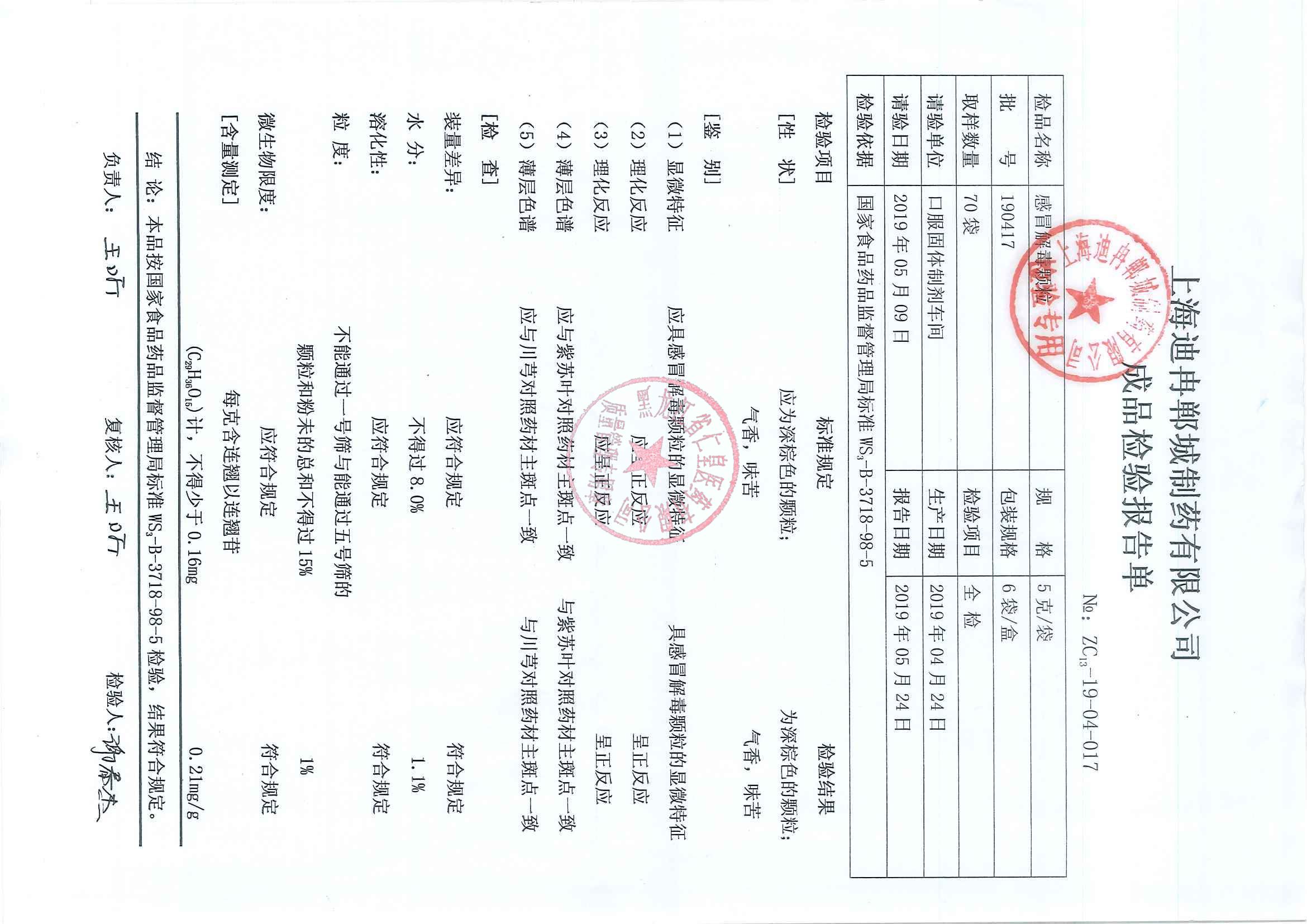 _感冒灵颗粒1901