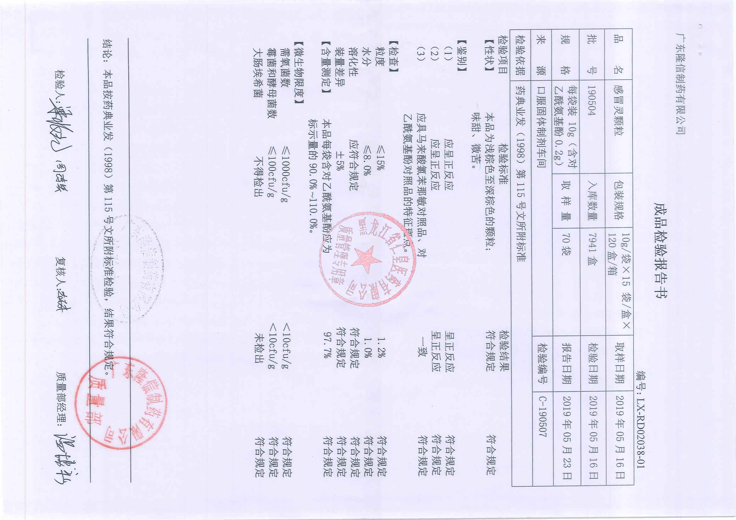 _感冒灵颗粒1905
