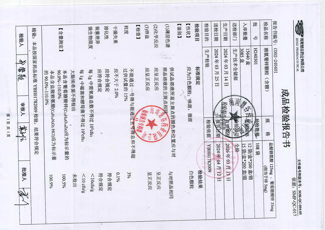 赖氨葡锌颗粒H240