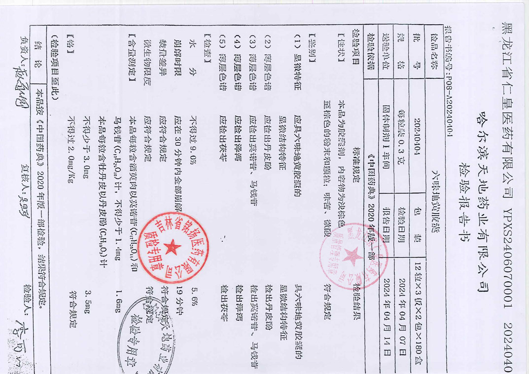 六味地黄胶囊2024