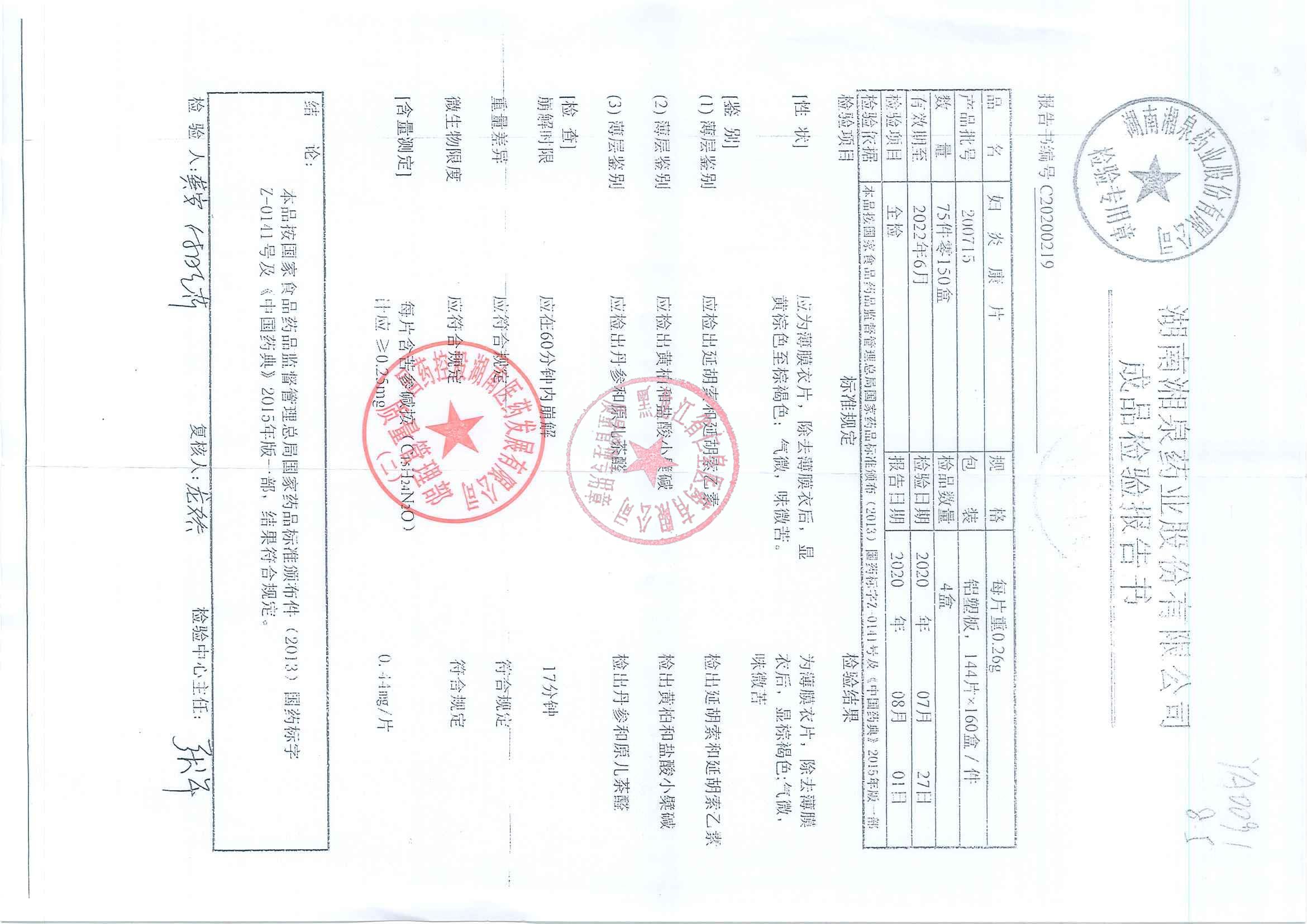 _妇炎康片19080