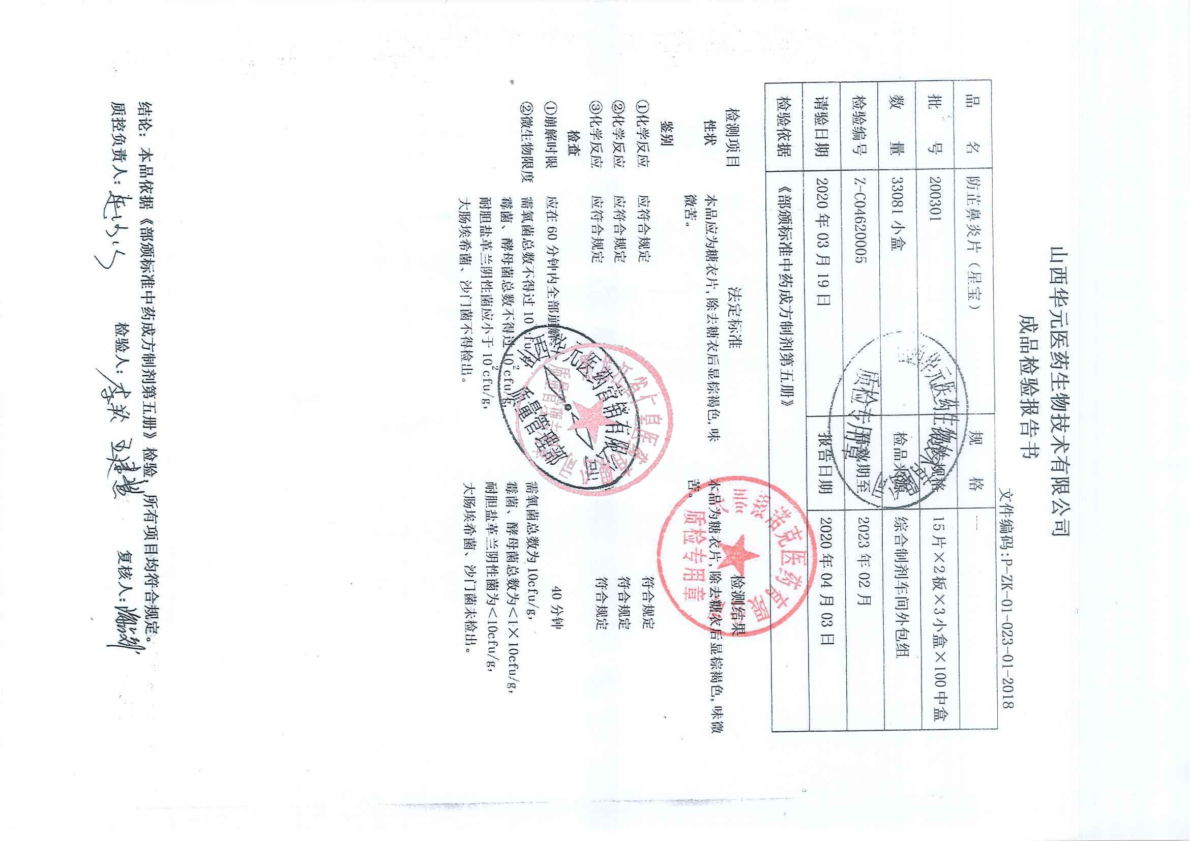 _防芷鼻炎片2003