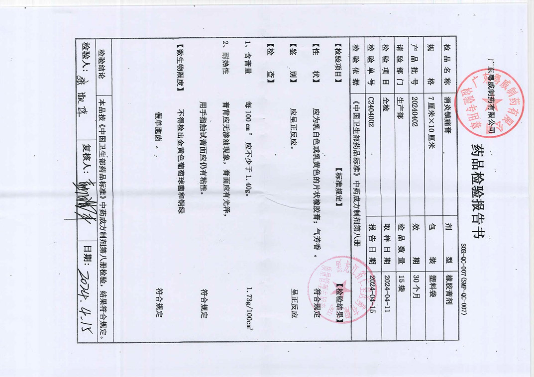 消炎镇痛膏20240