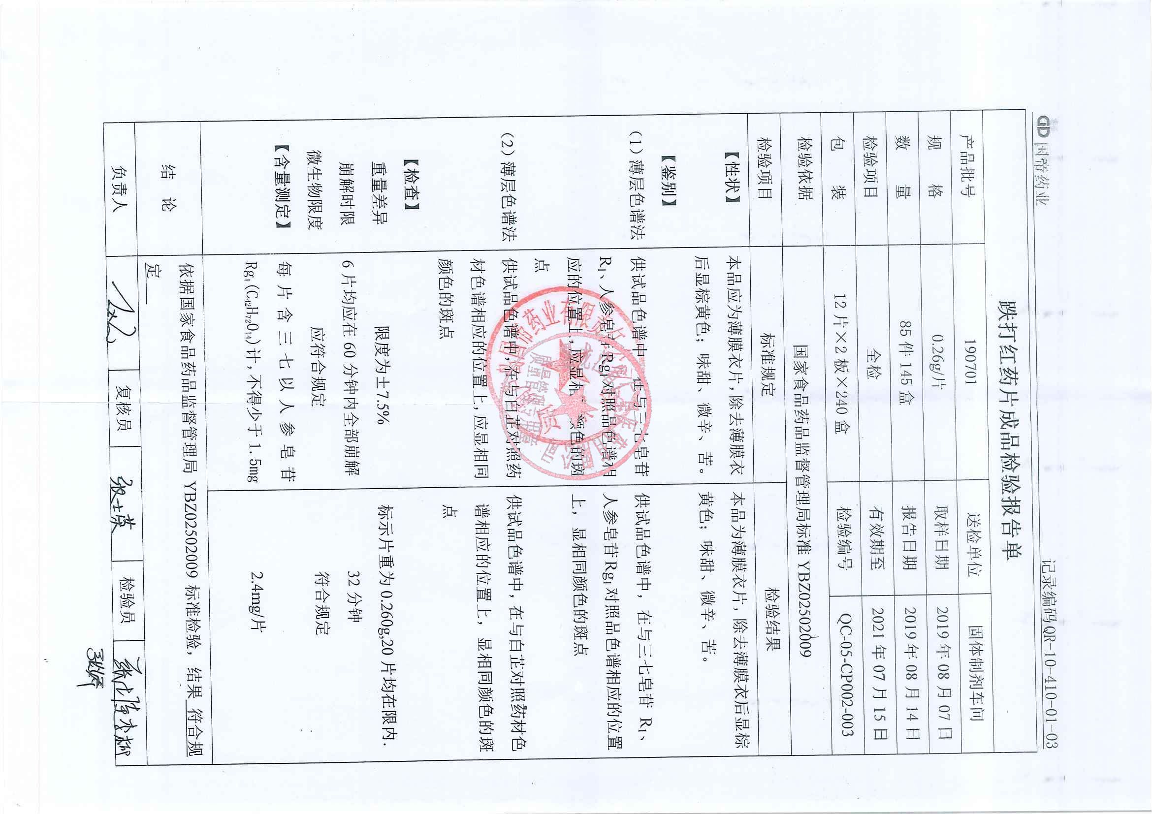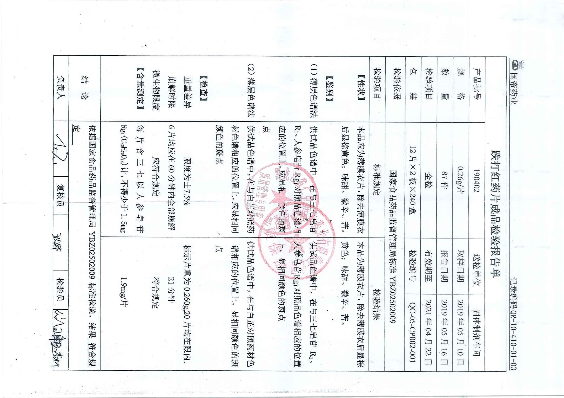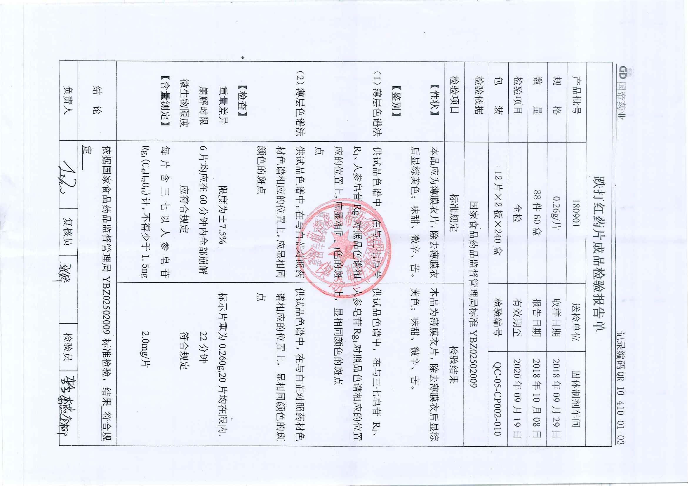 _跌打红药片1809
