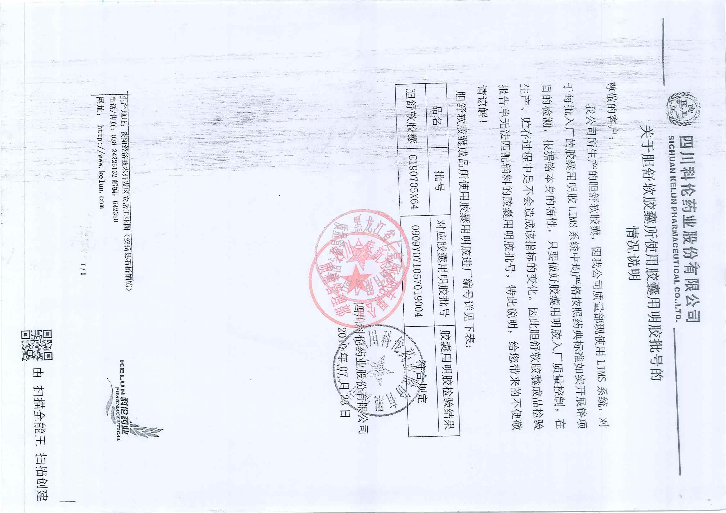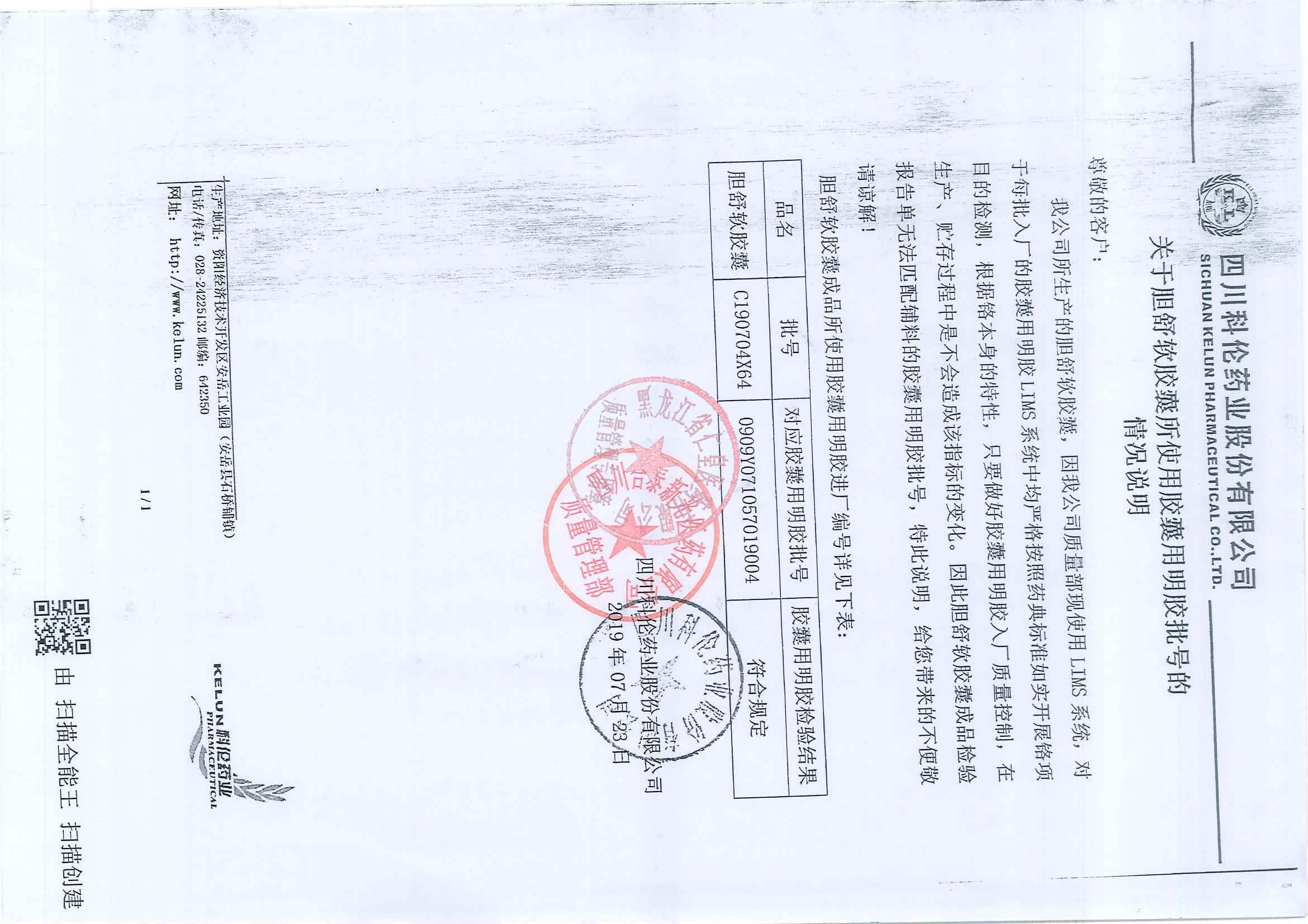 _胆舒软胶囊C190