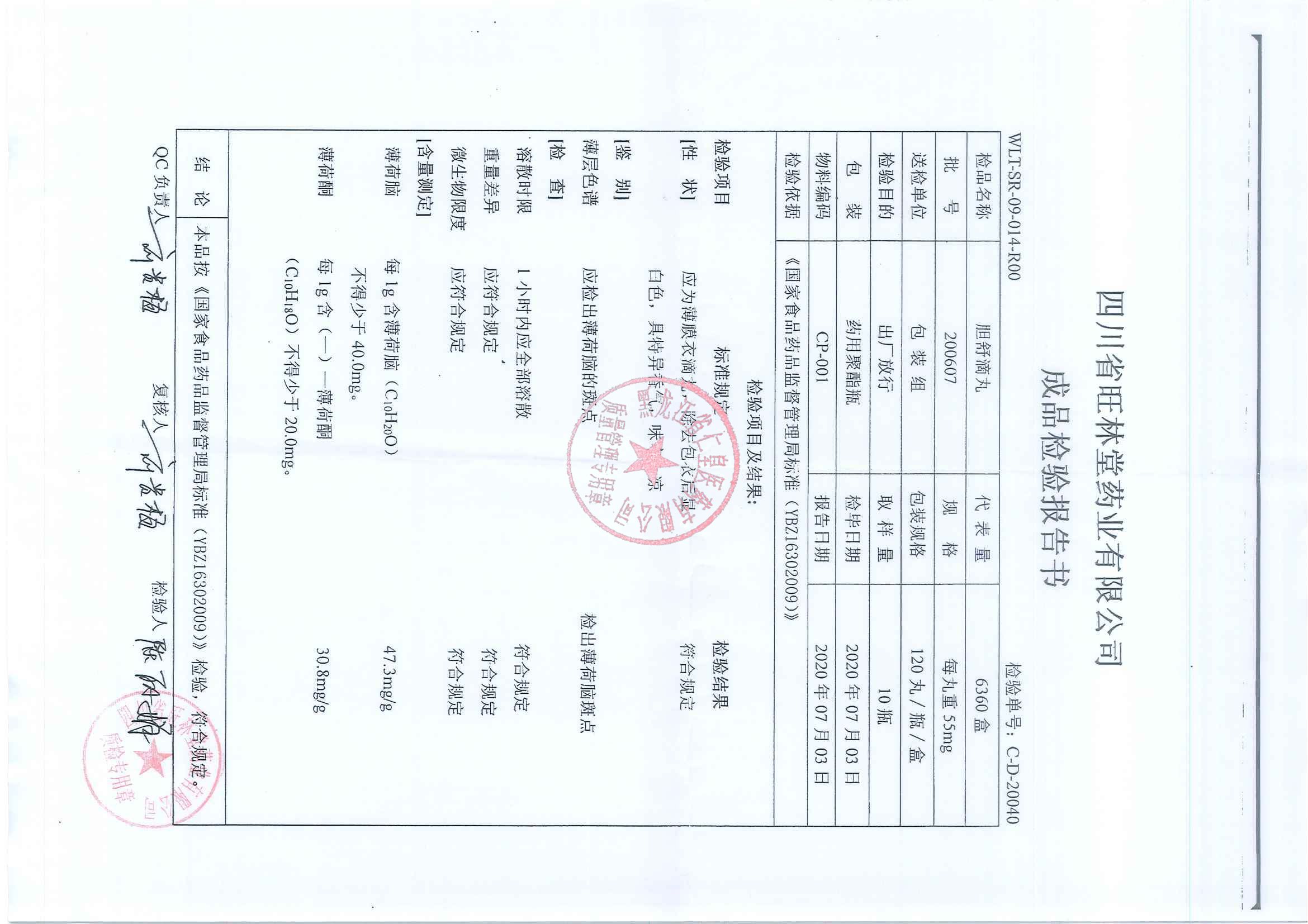 _胆舒滴丸20090