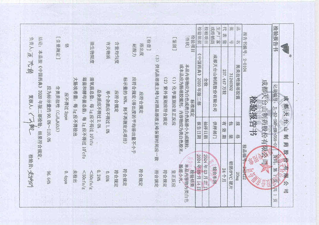 奥美拉唑肠溶胶囊24