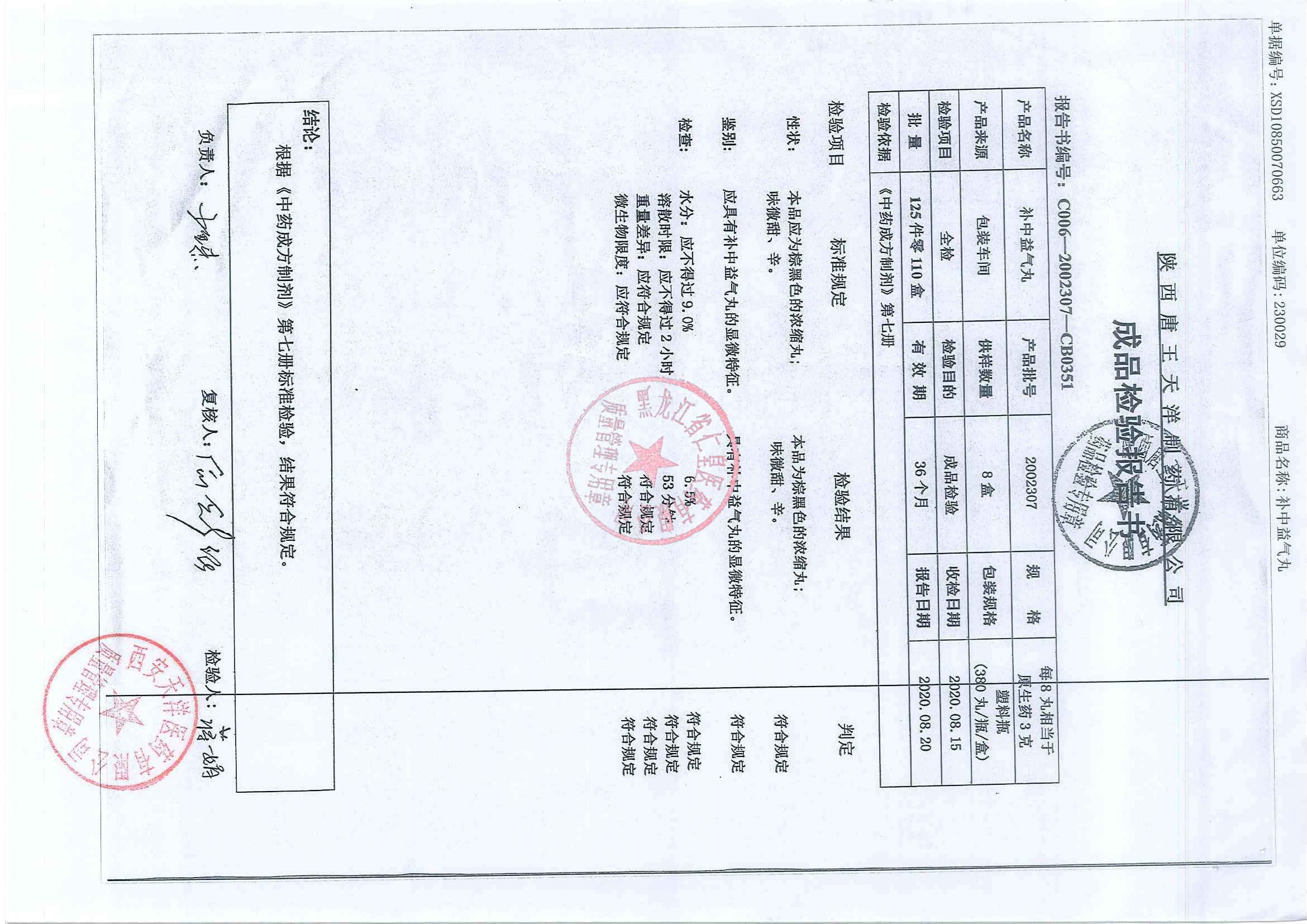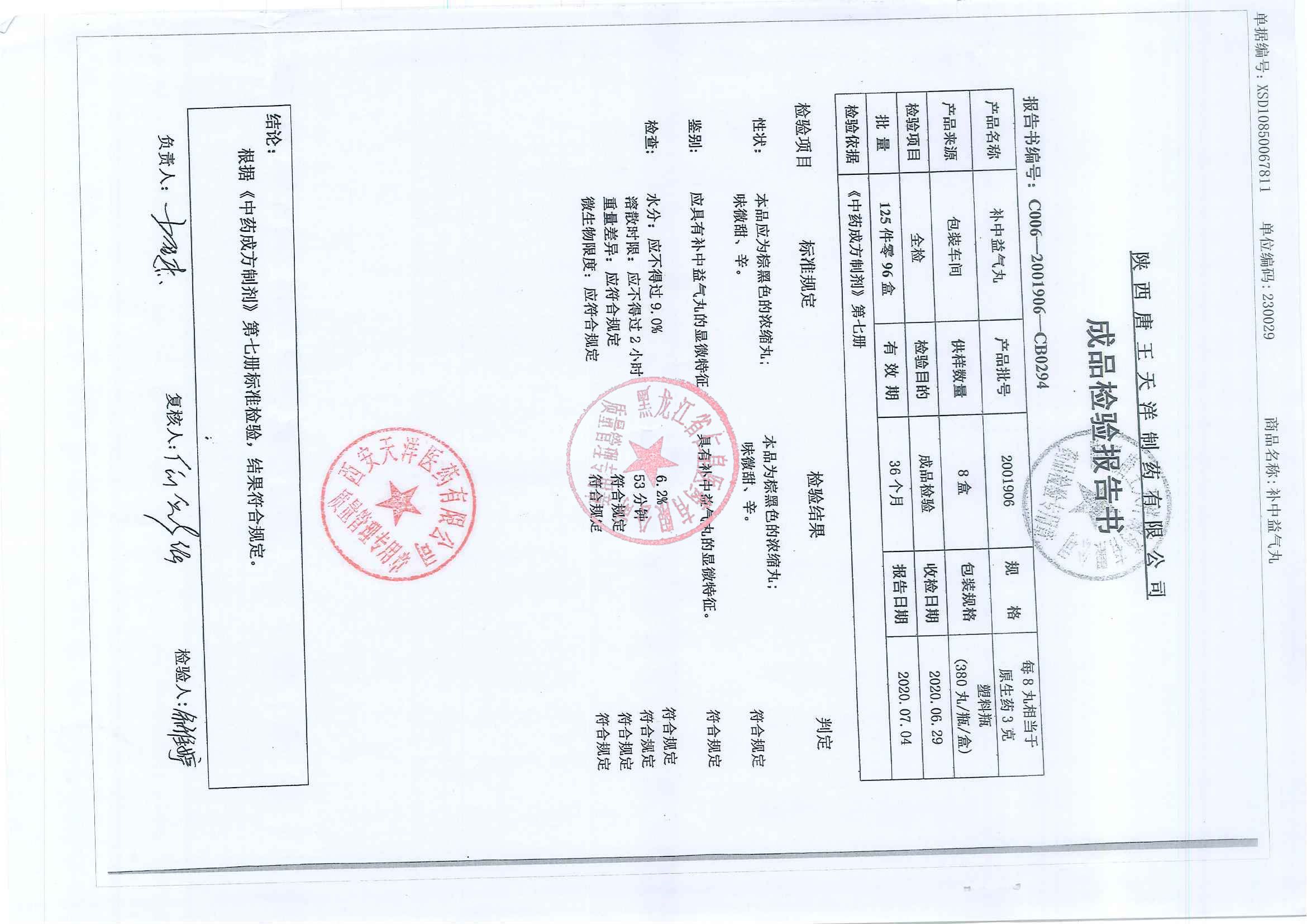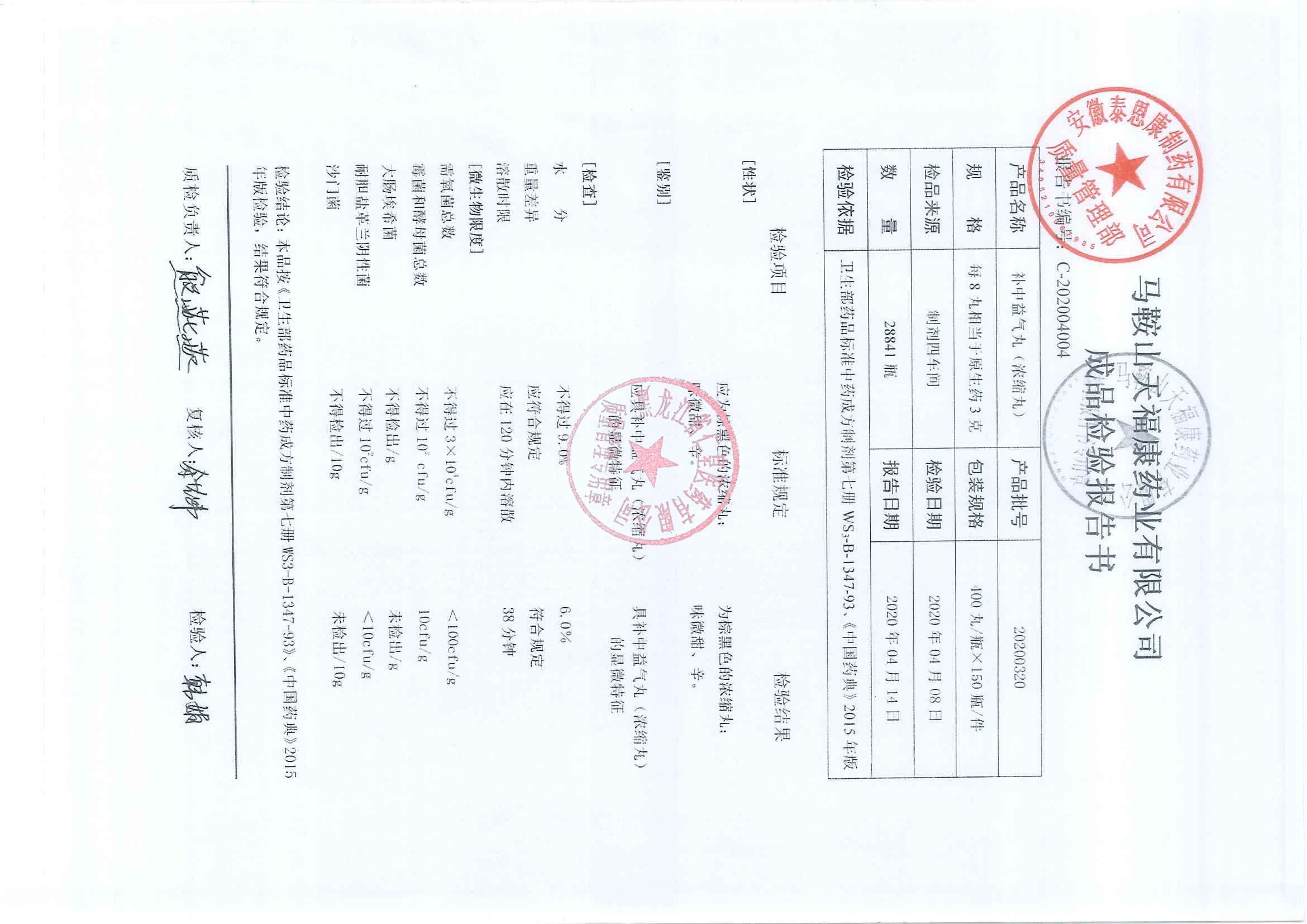 _补中益气丸2020