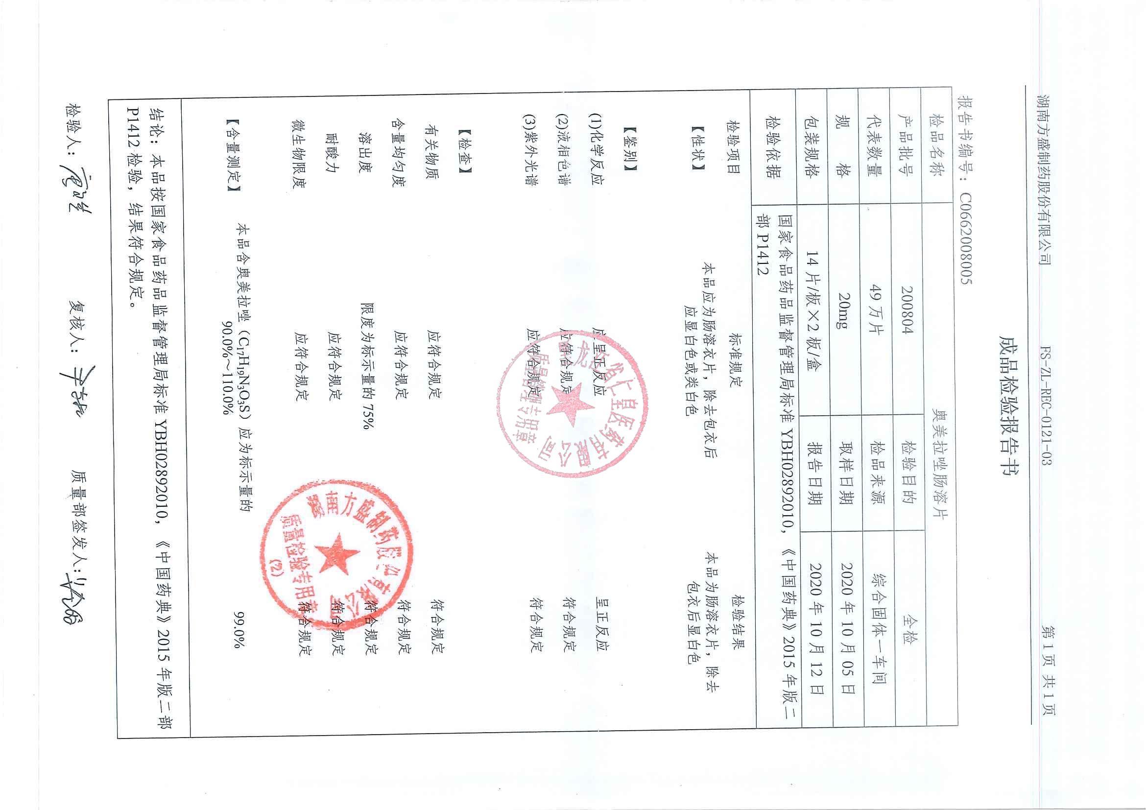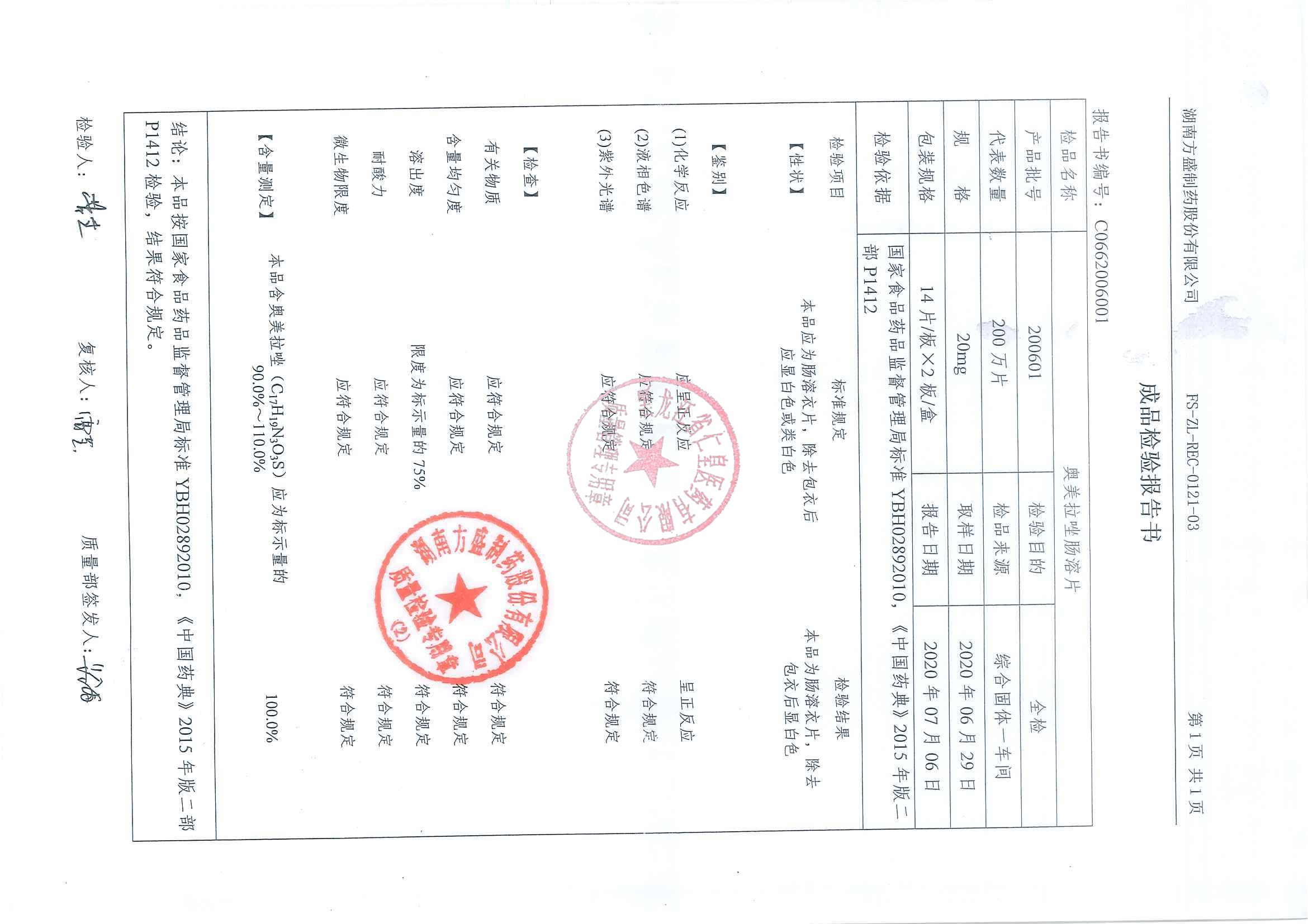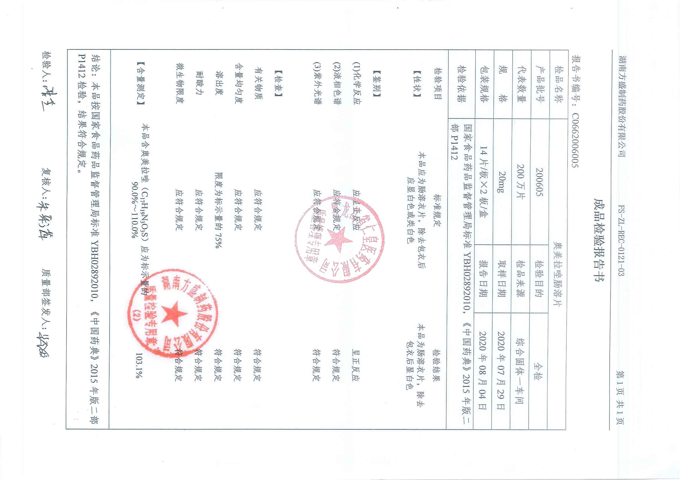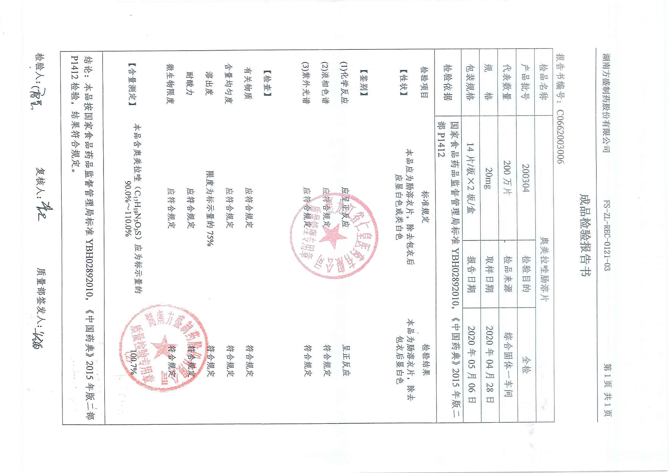 _奥美拉唑肠溶片20