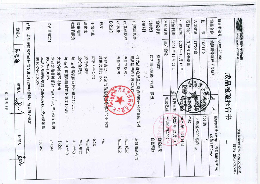 赖氨葡锌颗粒H231