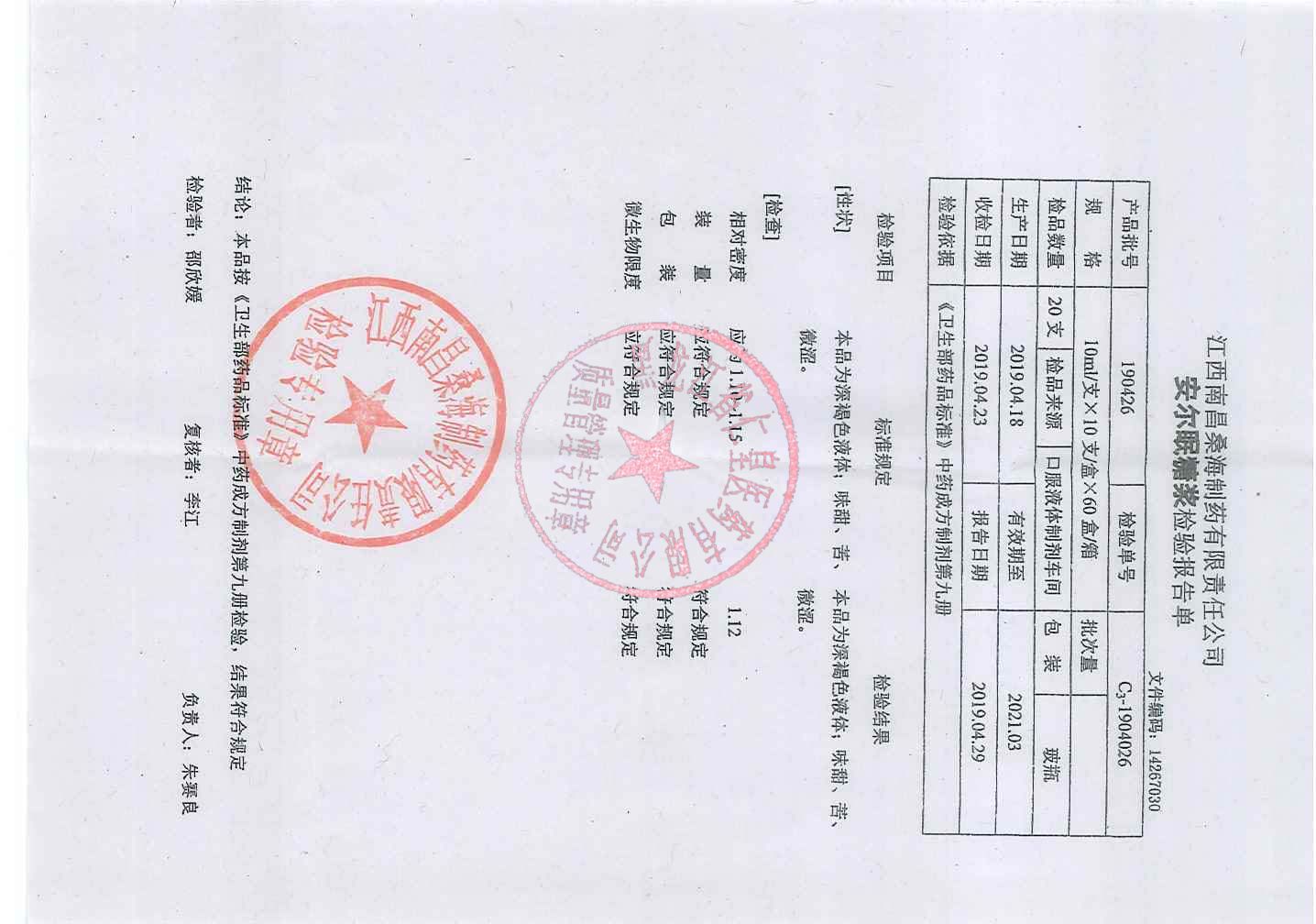 _安尔眠糖浆1904