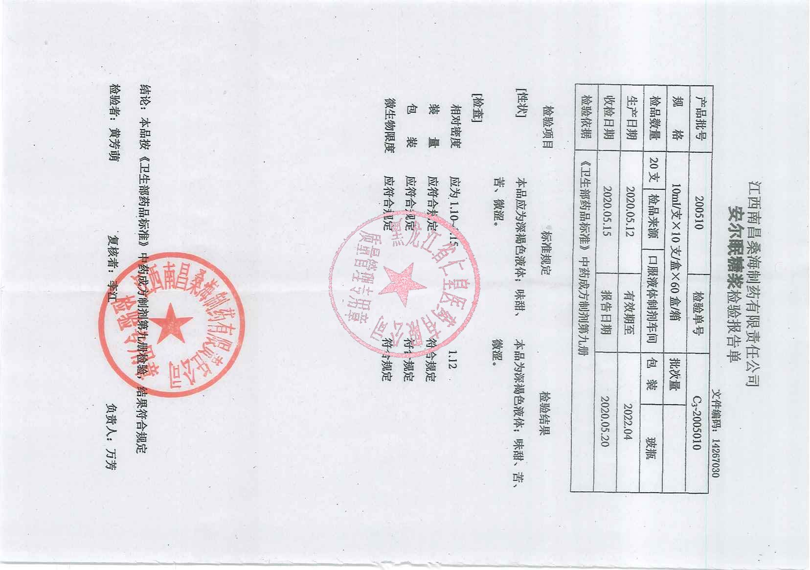 _安尔眠糖浆2005