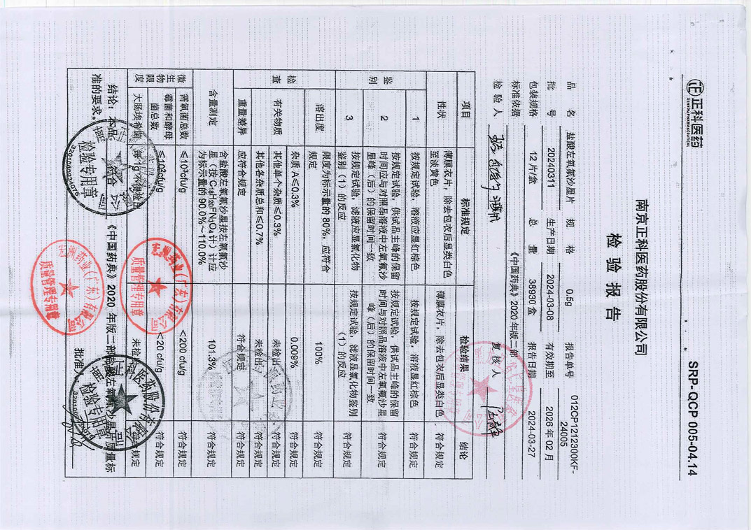 盐酸左氧氟沙星片20