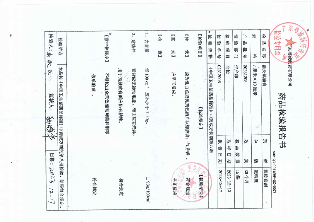 消炎镇痛膏20231