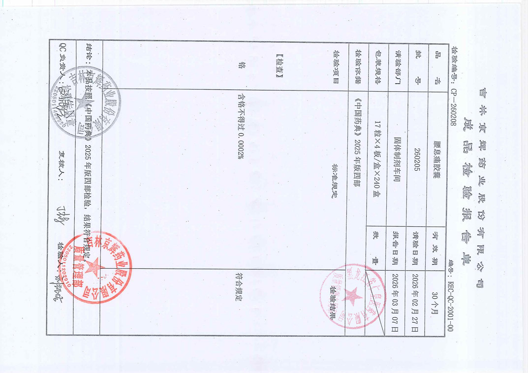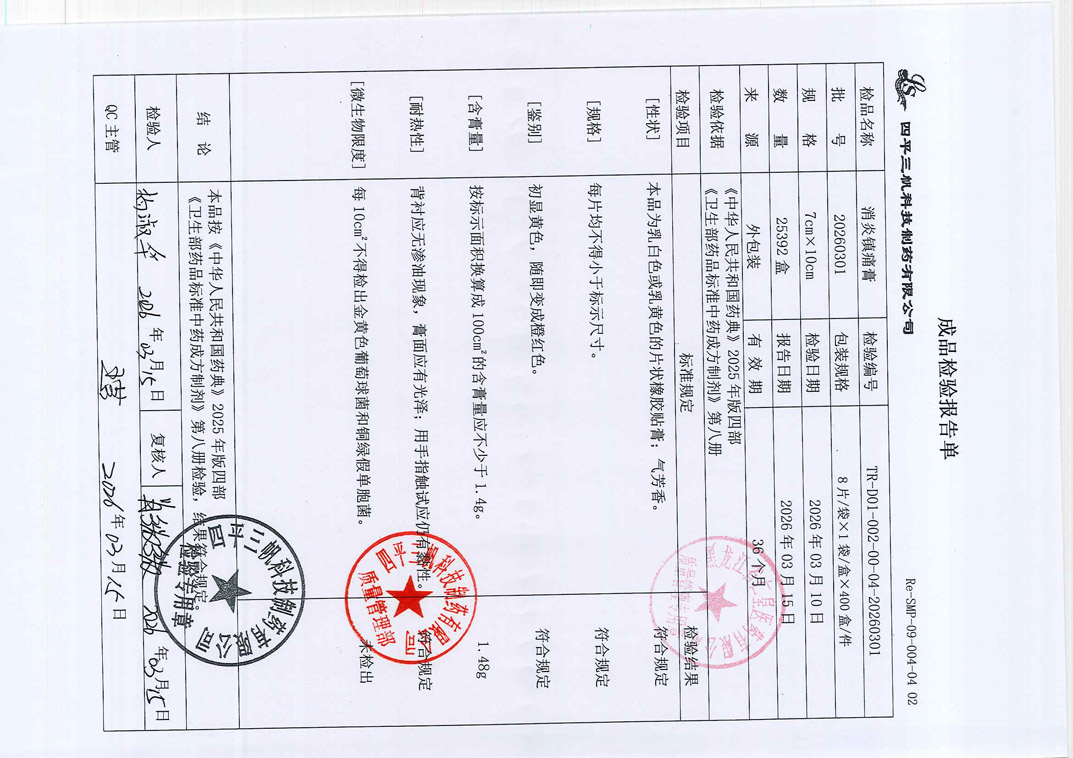 消炎镇痛膏20260